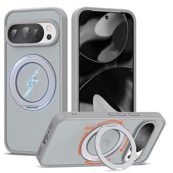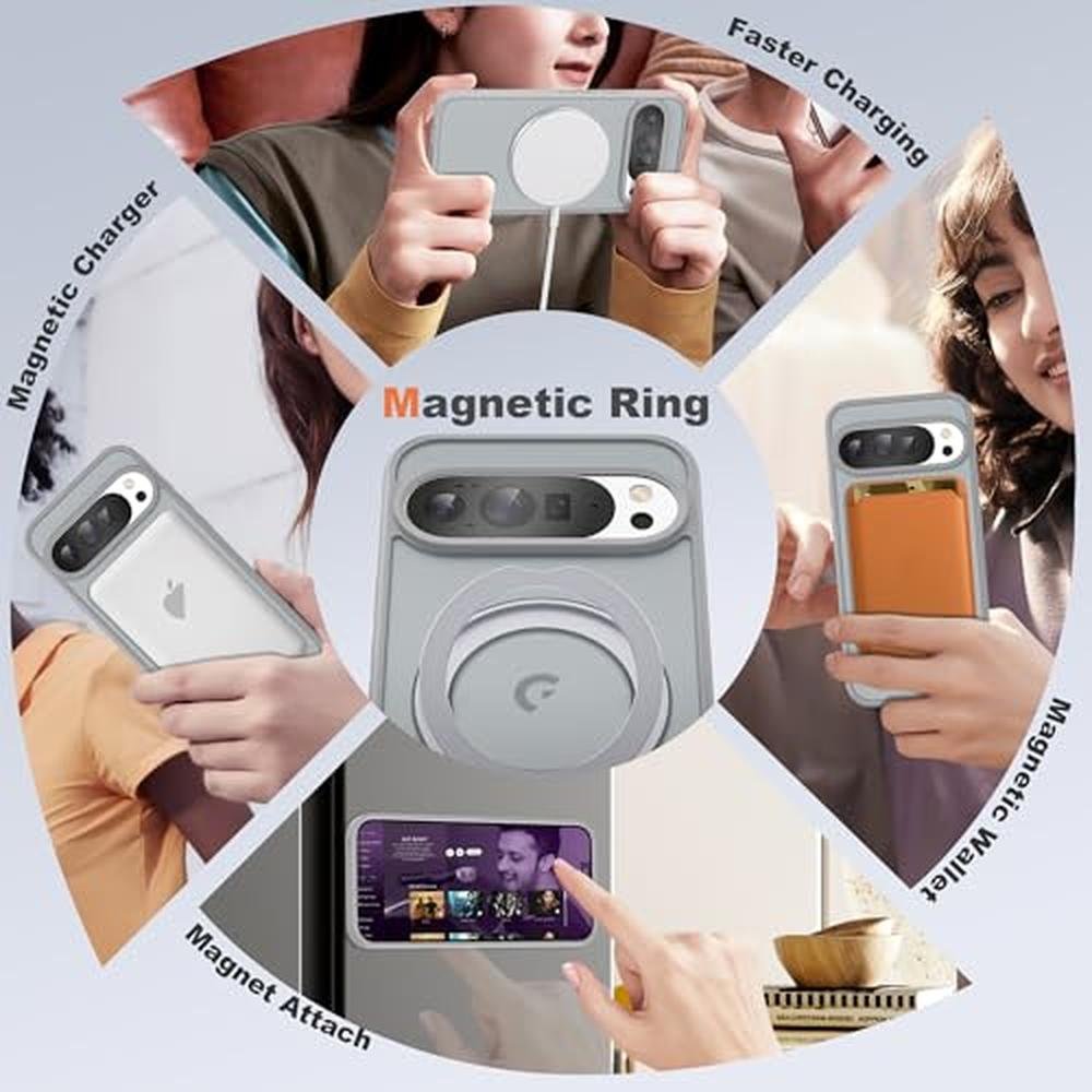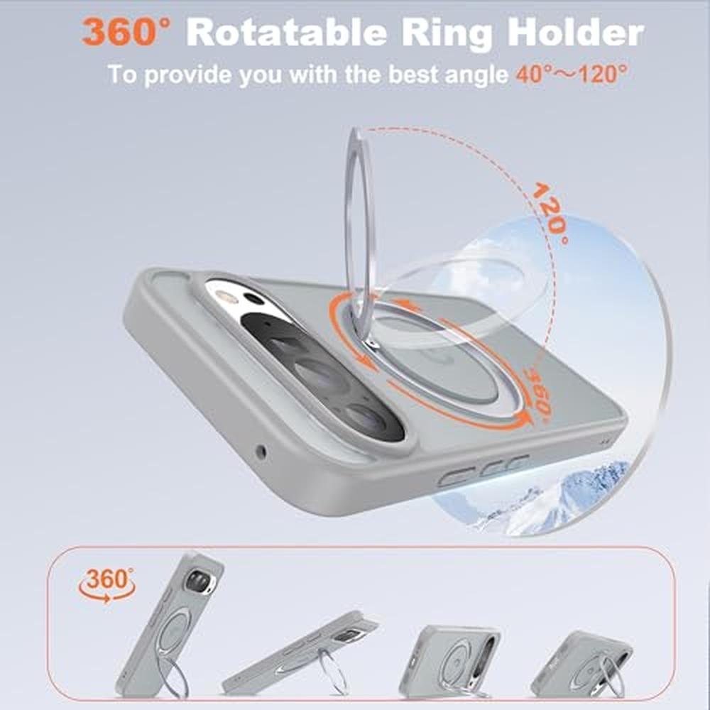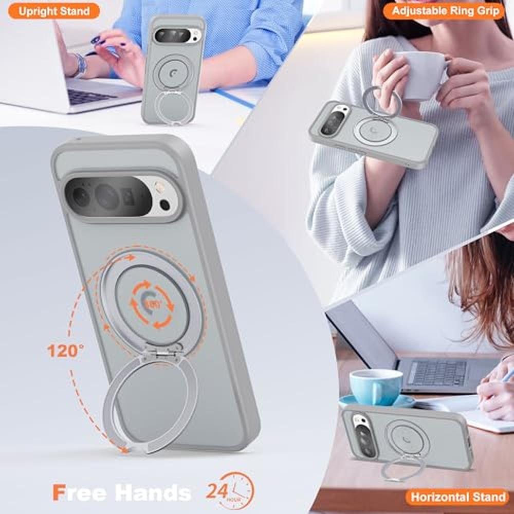 UGENINO Phone Case Compatible with Google Pixel 9/Pixel 9 Pro Case with 360 Magnetic Ring Stand [Compatible with Mag-Safe] Shockproof Translucent Phone Case for Google Pixel 9/Pixel 9 Pro 6.3", Grey