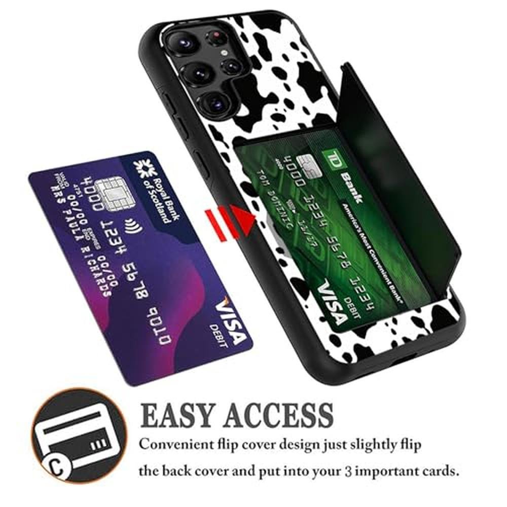 Vobber for Galaxy S25 Ultra Case,Wallet Case Hidden Card Slot Holder Shockproof TPU and PC Dual Layer Protective Case Cover for Samsung Galaxy S25 Ultra 6.8 Inch 2025,Cow Print