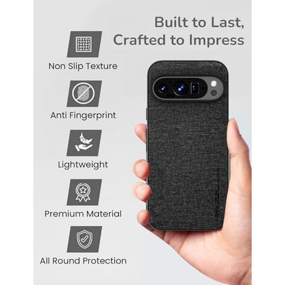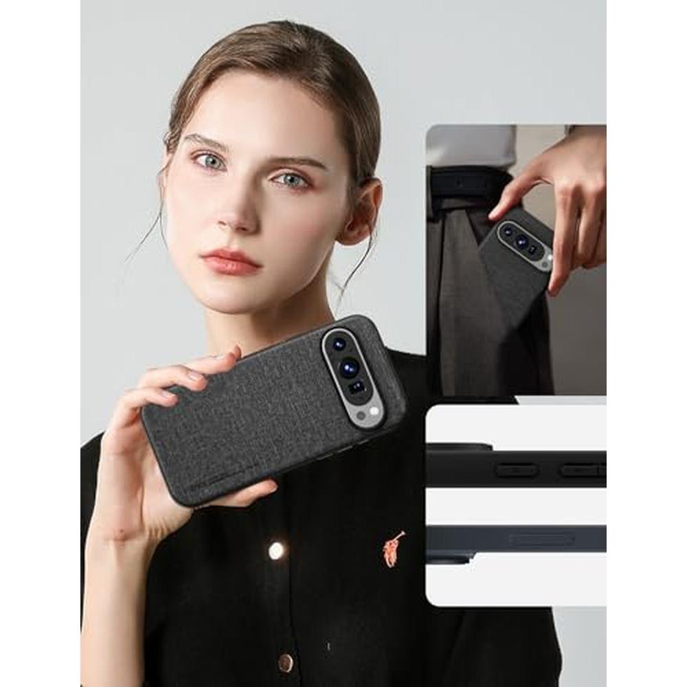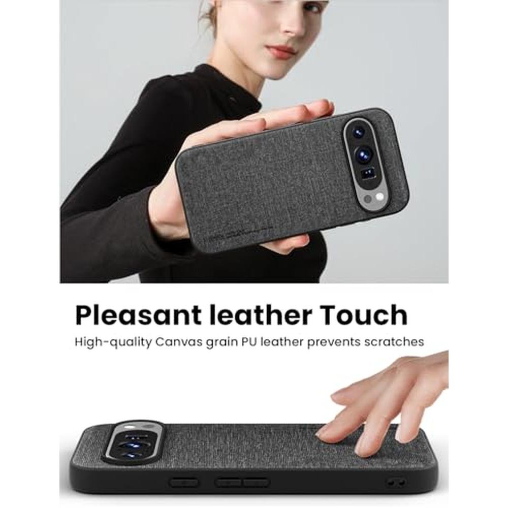 X-level for Google Pixel 9/Pixel 9 Pro Case,Slim Premium Canvas Grain PU Leather,Soft TPU Bumper,Non-Slip Anti-Scratch Shock-Absorbent,Protective Phone Cover for Google Pixel 9/Pixel 9 Pro,Black