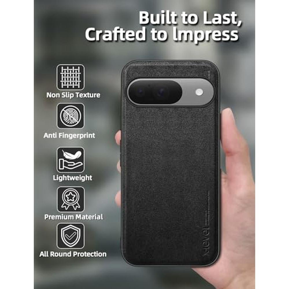 X-level for Google Pixel 9/Pixel 9 Pro Case,Slim Premium Suede Leather,Soft TPU Bumper,Comfort Grip,Shockproof Protective Phone Cover for Google Pixel 9/Pixel 9 Pro,Black