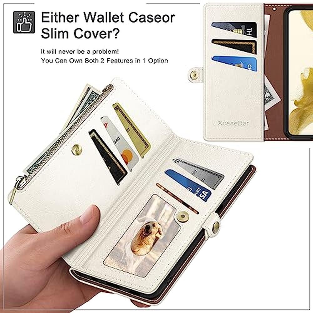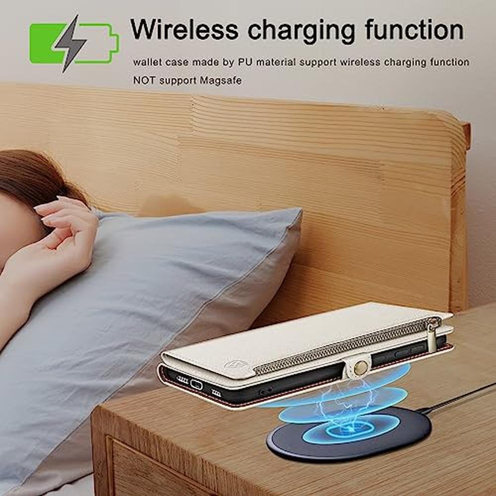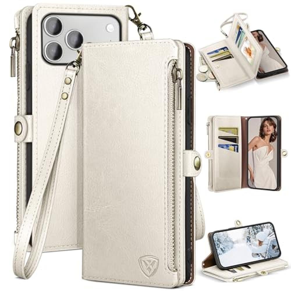 XcaseBar compatible with iPhone 17 Pro Max 6.9" Wallet case with Zipper Credit Card HolderRFID Blocking,Flip Folio Book PU Leather Phone case Shockproof Cover Women Men for Apple 17ProMax case White