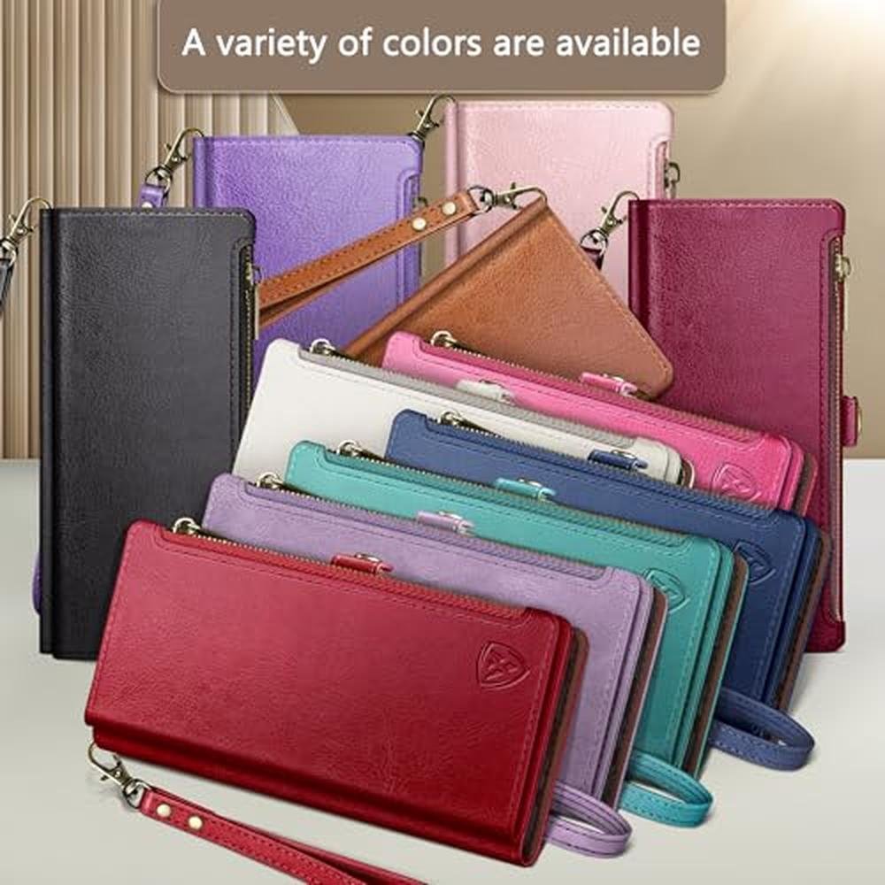 - Large CapacityCompatible with Samsung Galaxy S25 Ultra leather wallet case with 9 card holder,1 zipper pocket and 1 cash slots can store your credit cards,ID card,cash and some notes,etc.A detachable wrist strap provides much convenience for carrying it when you go outside