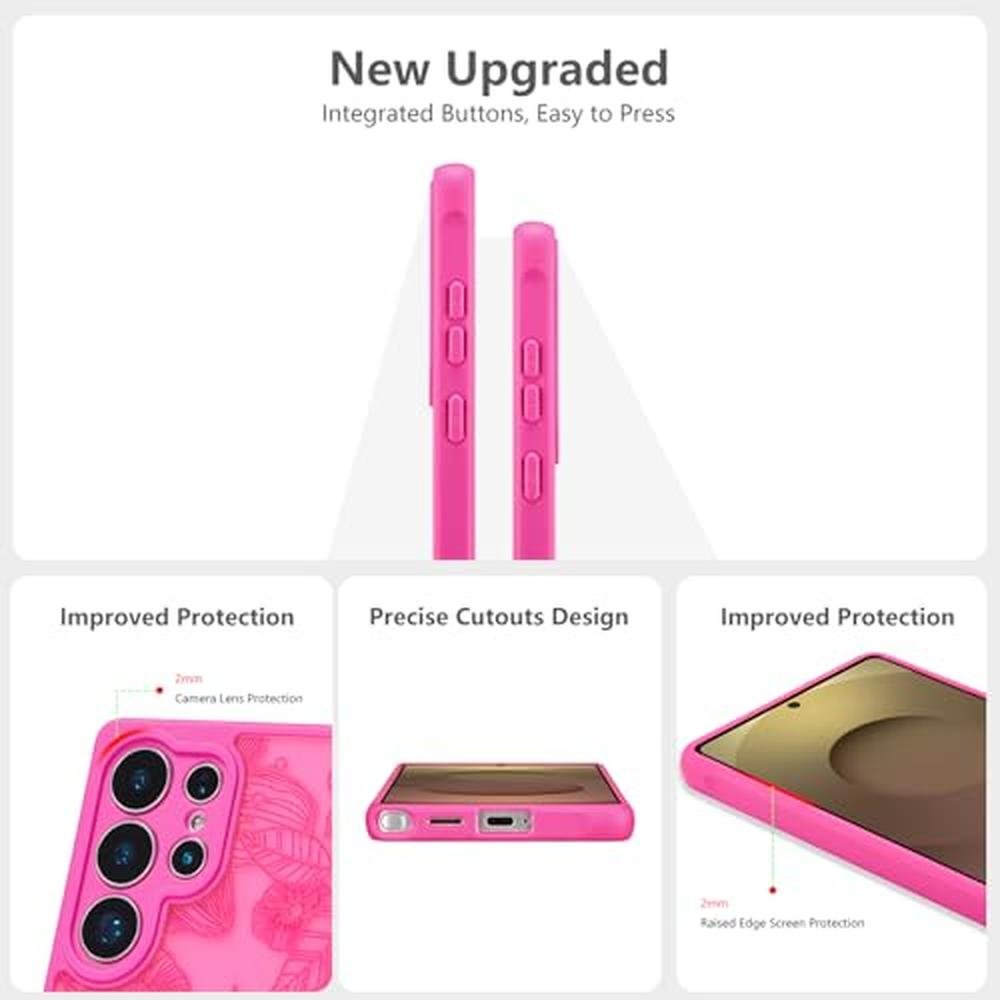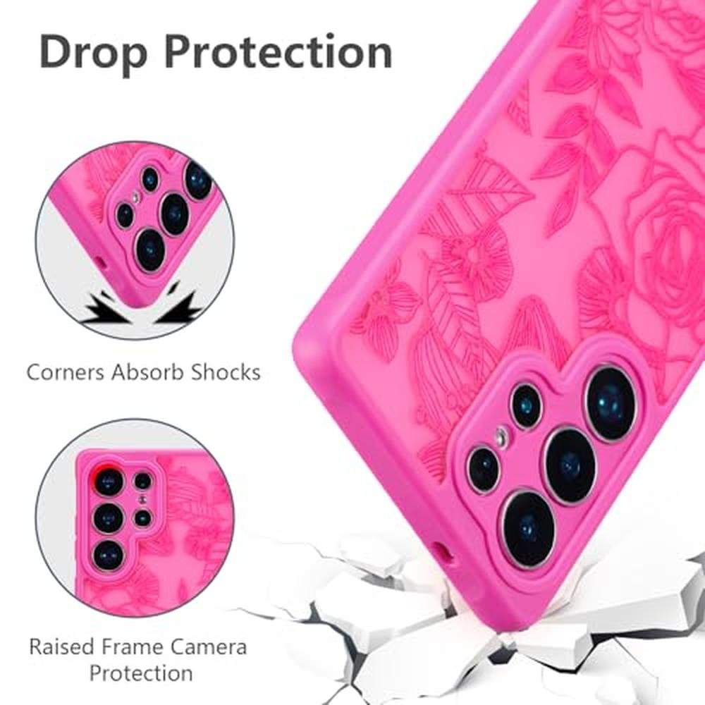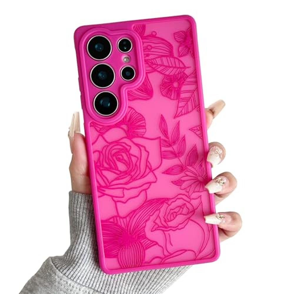 XIZYO for Samsung Galaxy S25 Ultra Case, Floral Rose Cute Phone Case for Women Girls Aesthetic Pattern Print Slim TPU Bumper Cover Shockproof Protective Cover for S25 Ultra, Hot Pink