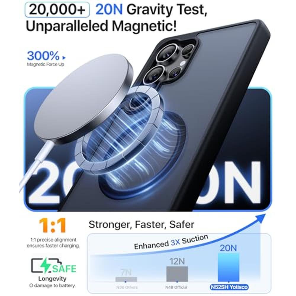 - Upgrade Strong MagneticThanks to the exclusive N52SH strong magnet, this Samsung s 25 ultra phone case magnetic force reaches 20N, which is 2X as strong as other magnetic case s25 ultra.Your phone will be achieving precise and firmly used with mag-safe accessories(magnetic car mount/power bank/wallet, etc.)at any time. Warm Tips: Please make sure your accessories are magnetic, otherwise they will not work. In addition, since its magnet is built-in, it may not support sticking to most refrigerators.