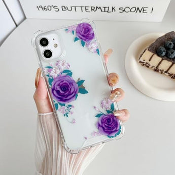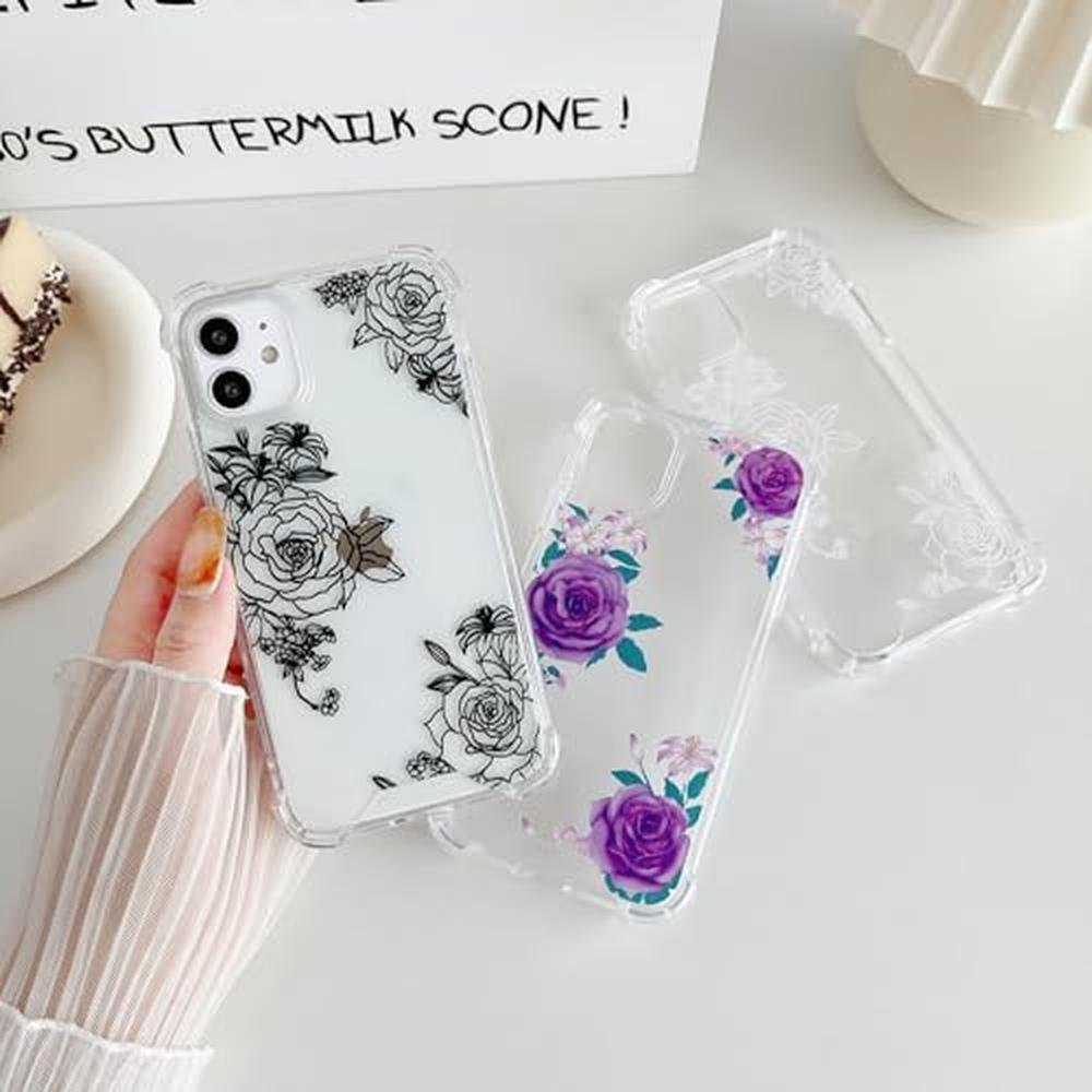 ZTOFERA for iPhone 11 Phone Case Clear, Cute Flower Rose Pattern Designed with Clear Hard Back & Soft TPU Bumper Shockproof Protective Case for iPhone 11- Purple