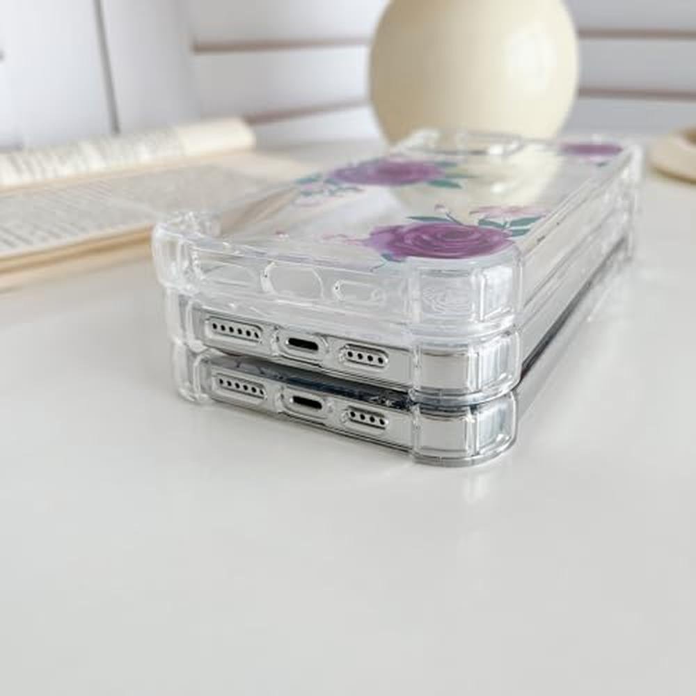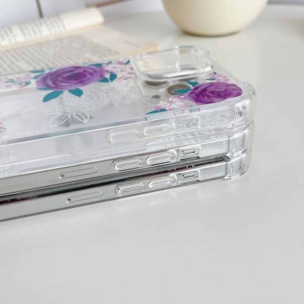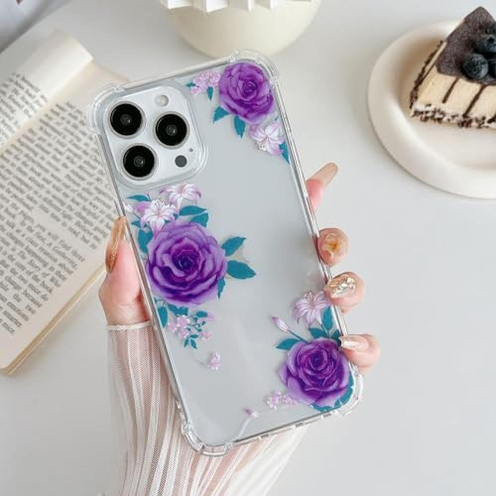 ZTOFERA for iPhone 15 Pro Phone Case Clear, Cute Flower Rose Pattern Designed with Clear Hard Back & Soft TPU Bumper Shockproof Protective Case for iPhone 15 Pro- Purple