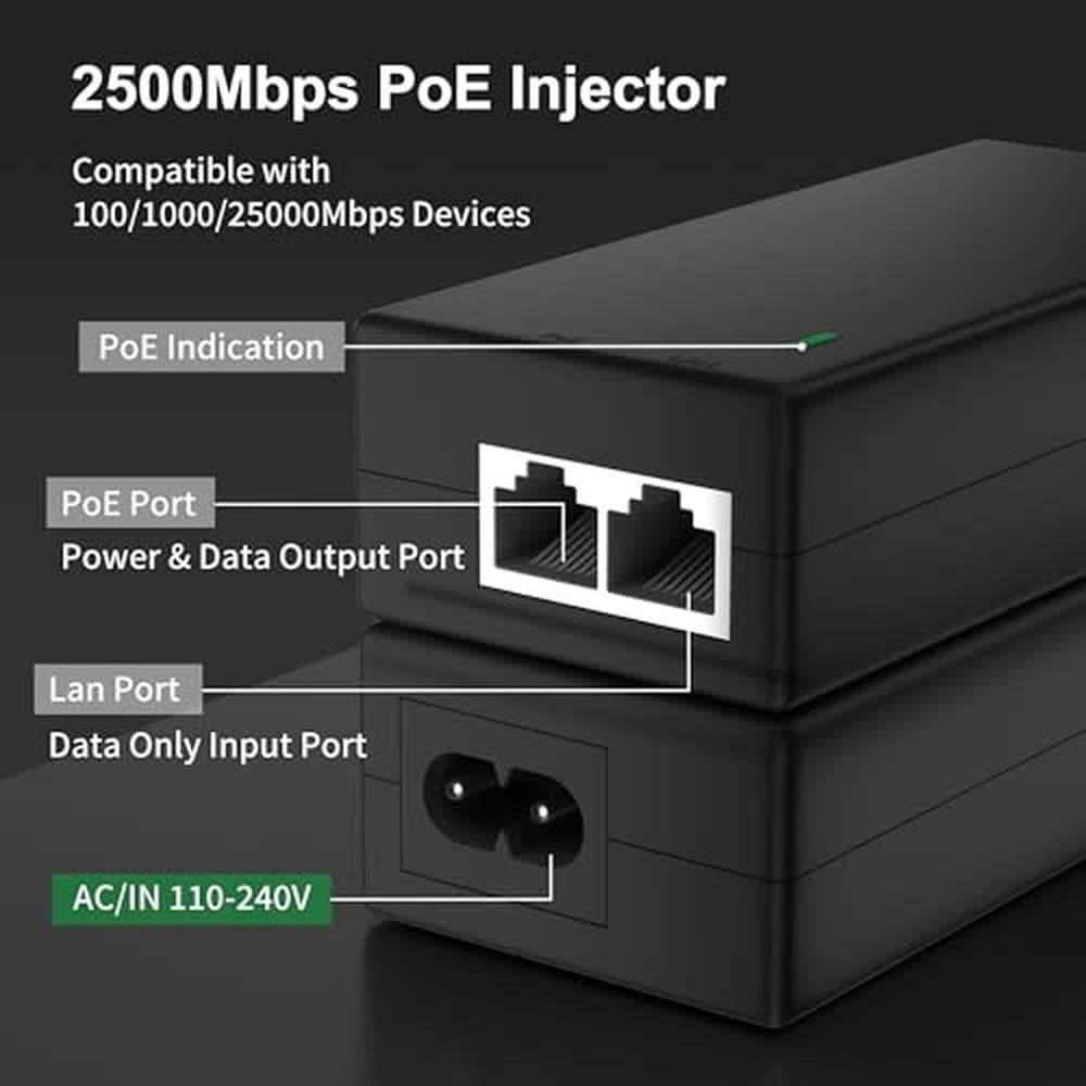 - Converts non-PoE networks to PoE, supporting data transfer rates of 100/1000/2500Mbps via RJ45 ports