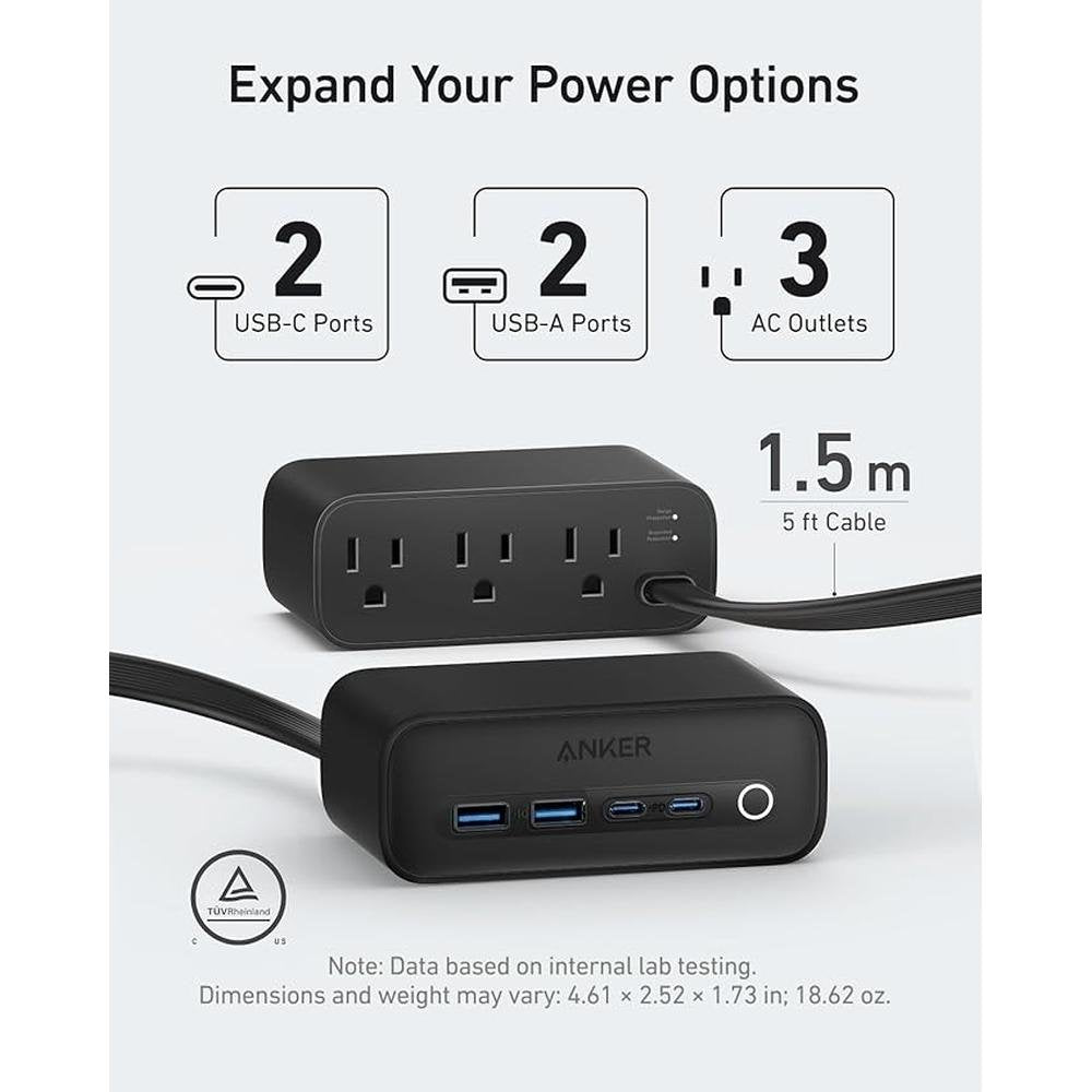 Anker 525 Charging Station, 7-in-1 USB C Power Strip for iphone13/14, 5ft Extension Cord with 3AC,2USB A,2USB C,Max 65W Power Delivery Desktop Accessory for MacBook Pro, Home, Office (Phantom Black)