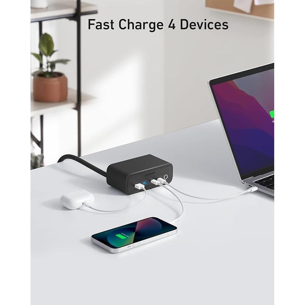 - Simultaneous High-Speed Charging Charge 4 devices at once with dual USB-C and USB-A ports for fast, efficient 65W power delivery.