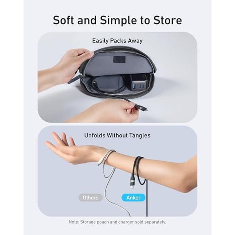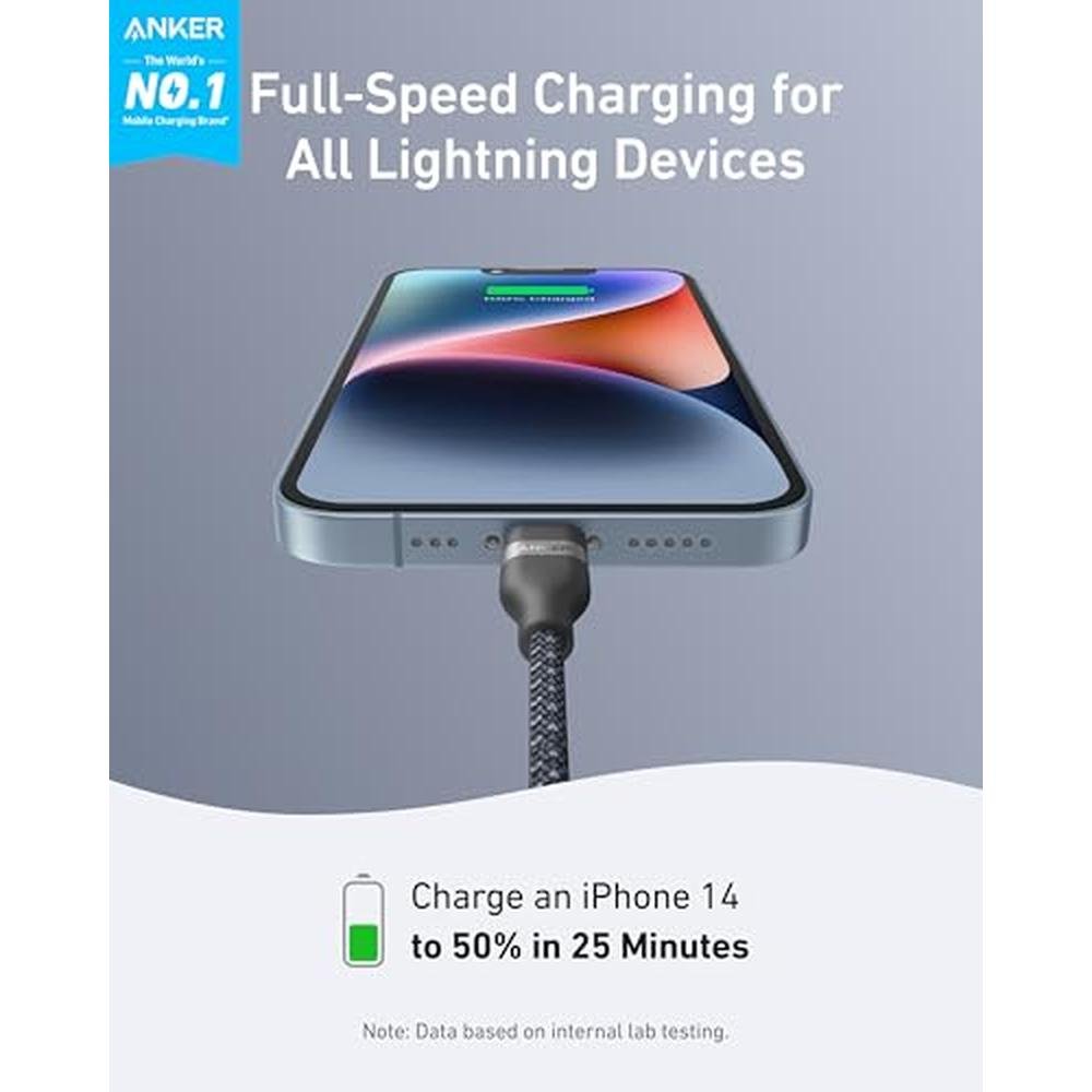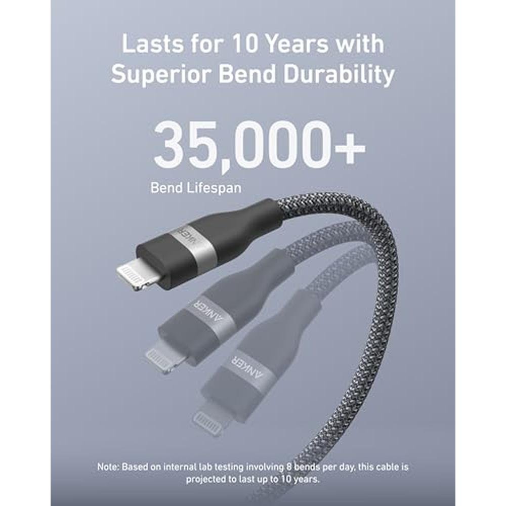 - The Anker USB-C to Lightning Cable features a 3FT upcycled-braided design for enhanced durability and sustainability, ensuring a long-lasting charging experience