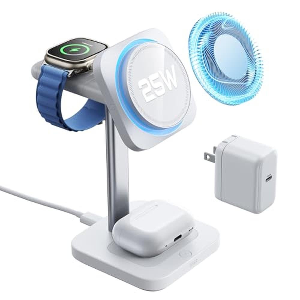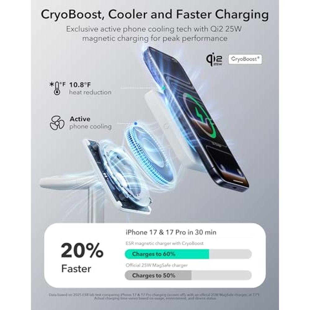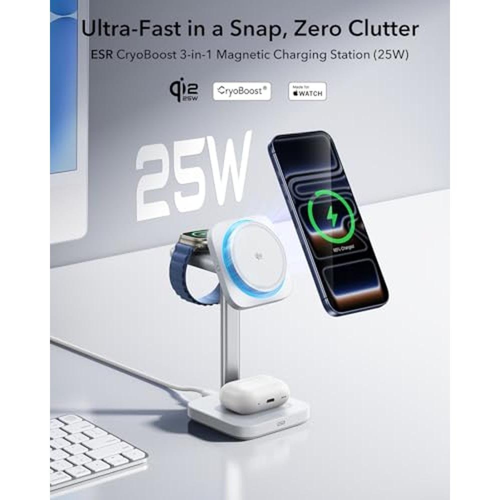 Charging Station | ESR 3-in-1 Qi2.2 Certified 25W MagSafe Charger Stand with CryoBoost | Fast Charging Station for iPhone 17/16, AirPods, Apple Watch