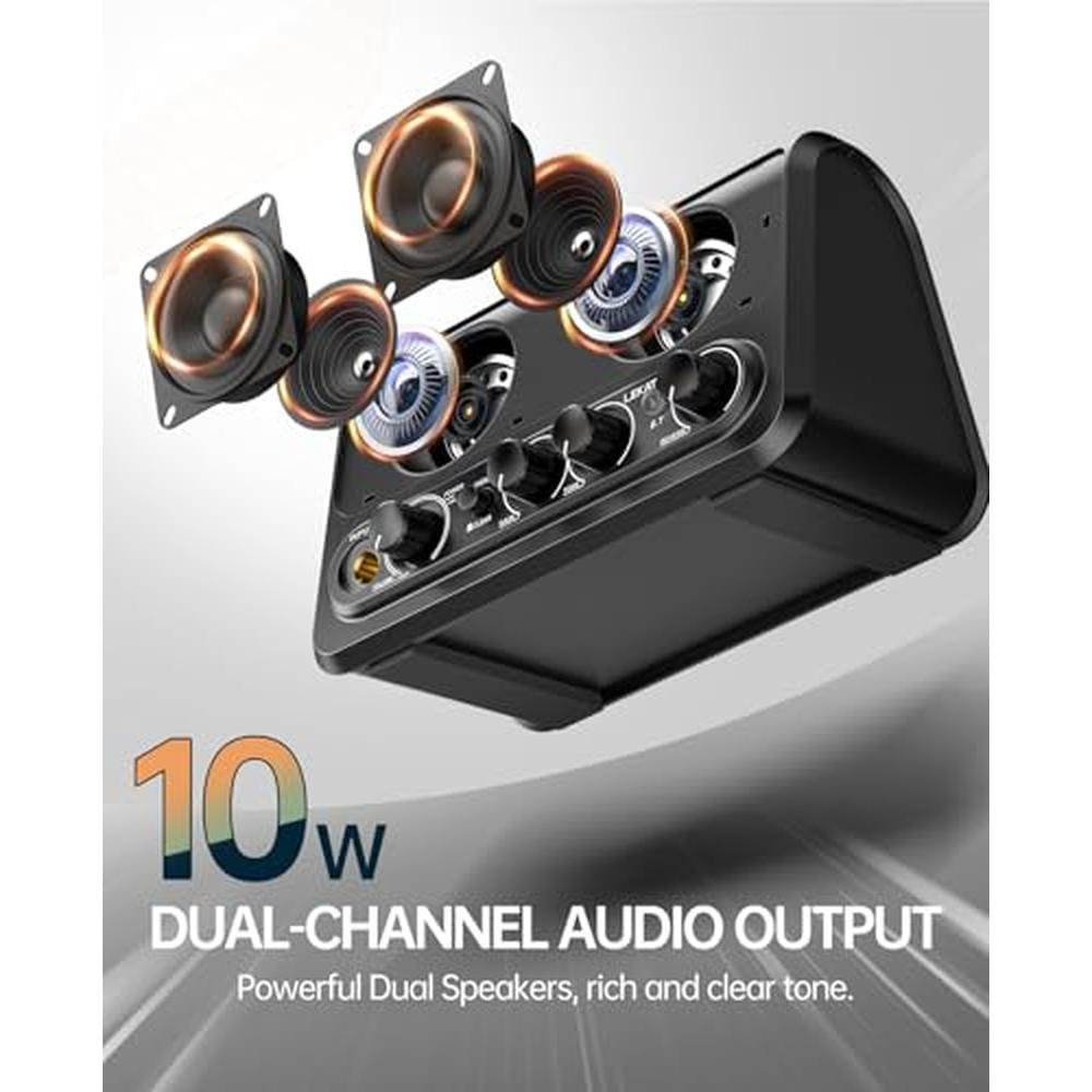 - Powerful Sound with Dual Speakers: Enjoy the robust performance of our 10W guitar amplifier, equipped with dual speakers to provide ample volume for both indoor and outdoor practice. Experience clear, rich sound quality that enhances your guitar's natural tone.