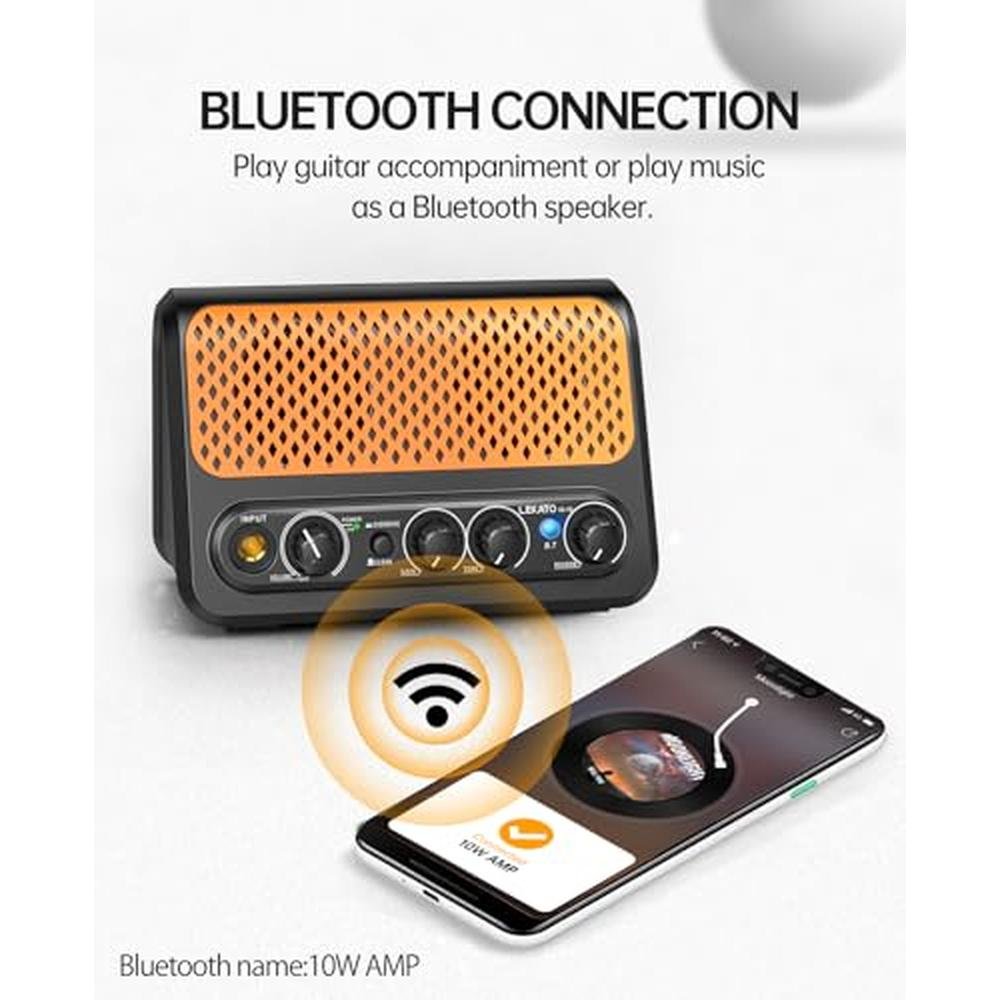 Mini Guitar Amp,LEKATO 10W Portable Electric Guitar Amplifier with Clean & Overdrive Channel,Reverb,Bluetooth Small Guitar Amp for Practice (Black-Orange)