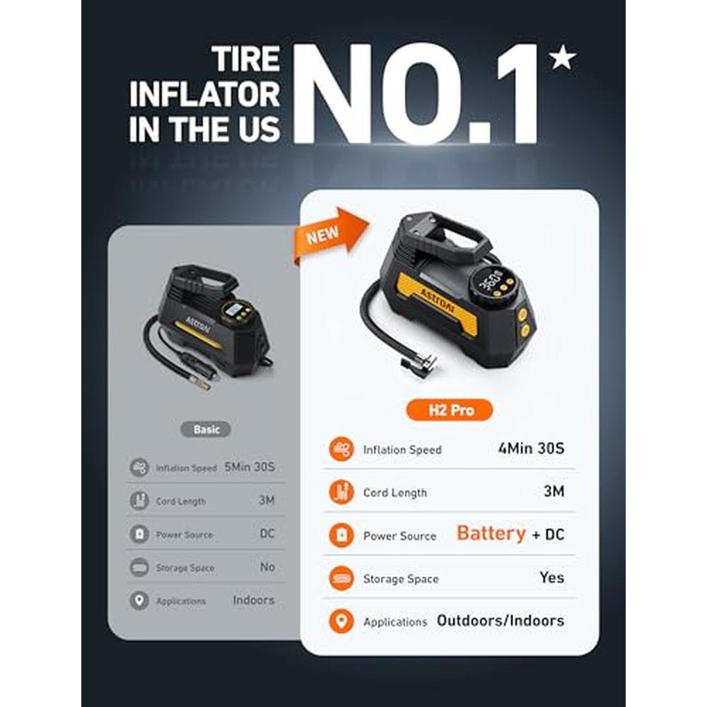 Air Pump | AstroAI H2 Pro Tire Inflator Portable Air Compressor | Fast Inflation Digital Pressure Gauge
