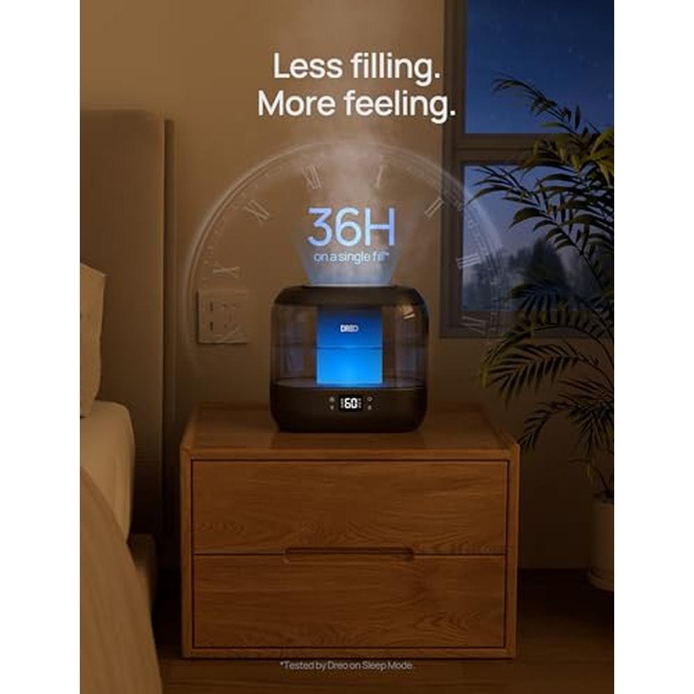 - Effortless Design, Long-Lasting Comfort: Dreo portable humidifier features an easy top fill design. You can fill it up without flipping the tank or spilling water. Its modular design is easy to remove and install for a hassle-free cleaning experience. Enjoy 36 H of uninterrupted comfort with quiet humidified air. Dreo's acoustic design reduces noise to 28dB. The 4L tank ensures this baby humidifier doesn't need refilling overnight