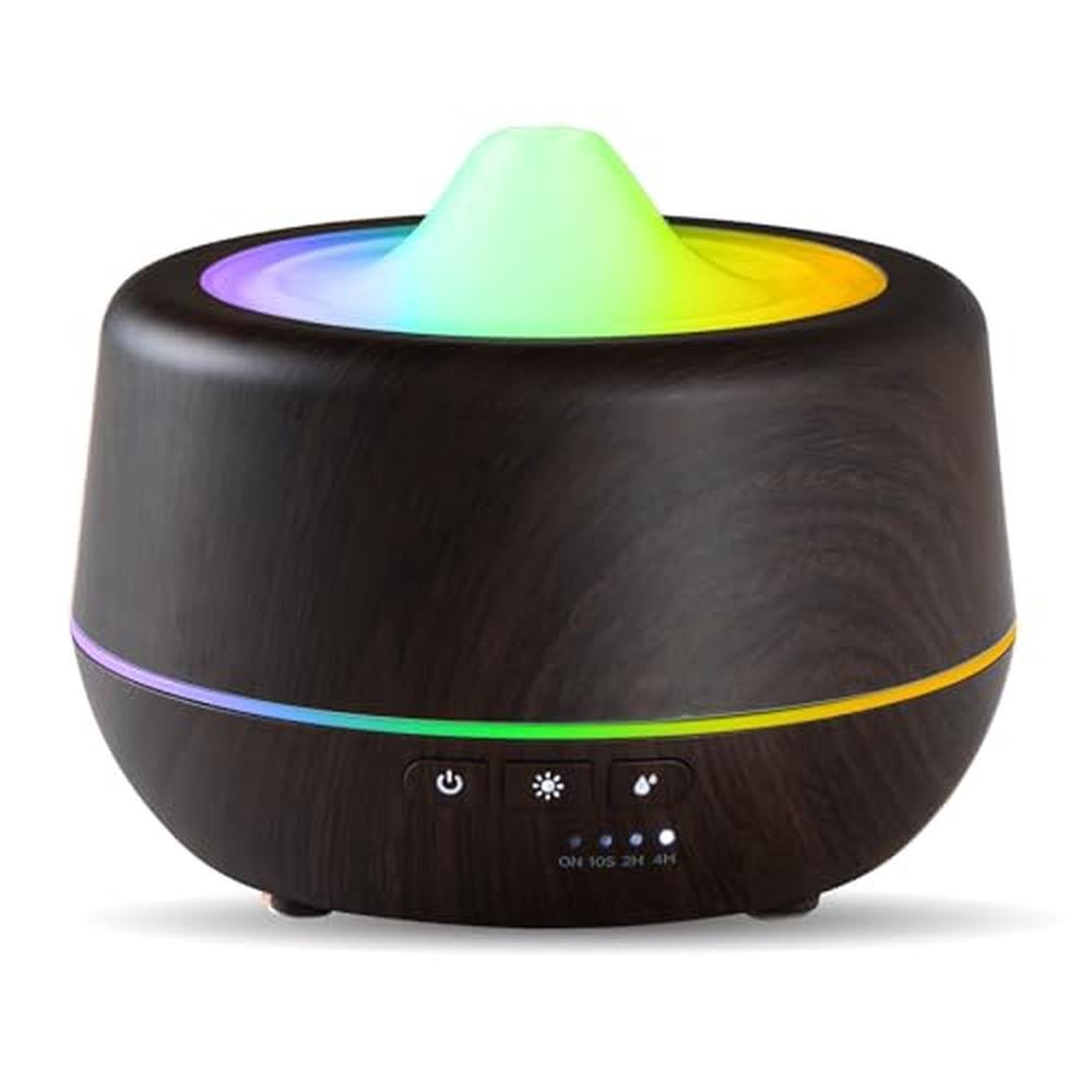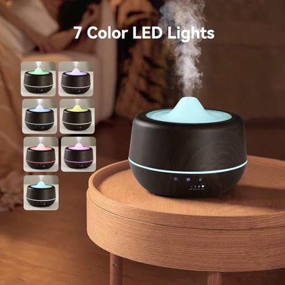 Essential Oil Diffuser, 500ml Crack Ultrasonic Fragrance Aromatherapy Diffuser, Cool Mist Humidifier with 7 Color Led Lights for Home, Bedroom, Auto Shut-Off Function (Dark Brown)