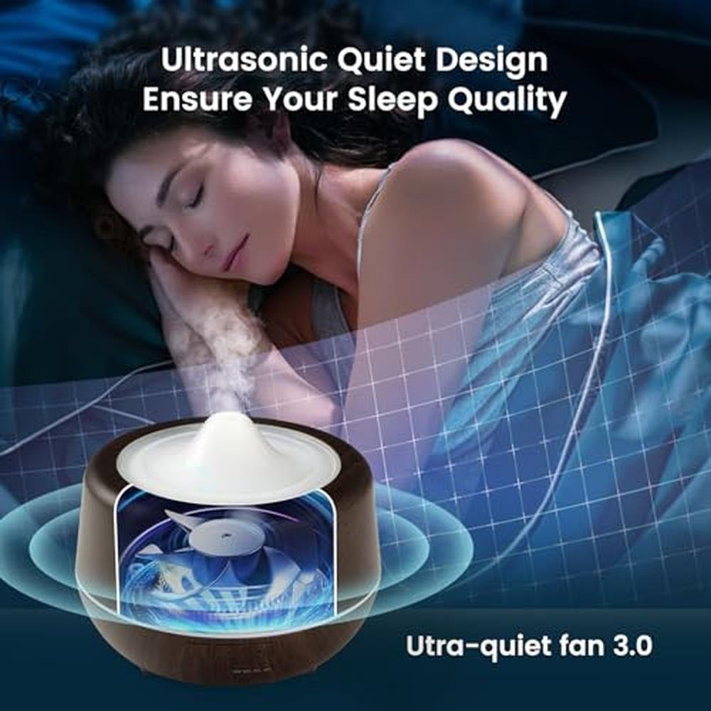 - [Ultrasonic Quiet Design & Sleep Undisturbed]: Ultrasonic diffuser is moisturizes while allowing you to maintain a good night's sleep and enjoy the whole night. Aroma diffuser and personal humidifier when strong mist mode still work for 6-10 hours, and weak mist runs for 11-15 hours. Also, it will quiet and displayed you choose the Led light color when it is running 2 mist modes.