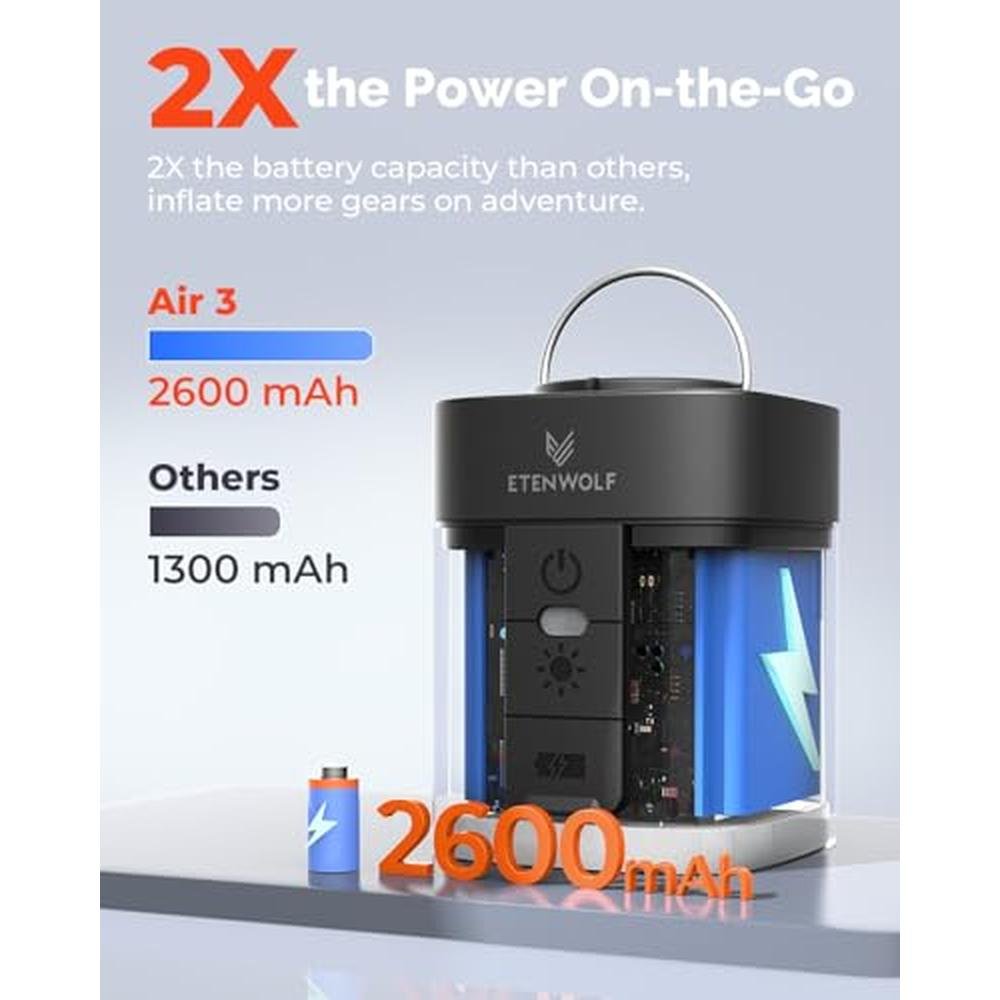 • The ETENWOLF AIR 3 features a powerful 2600 mAh battery for extended use and ultra-fast pumping action for quick inflation and deflation