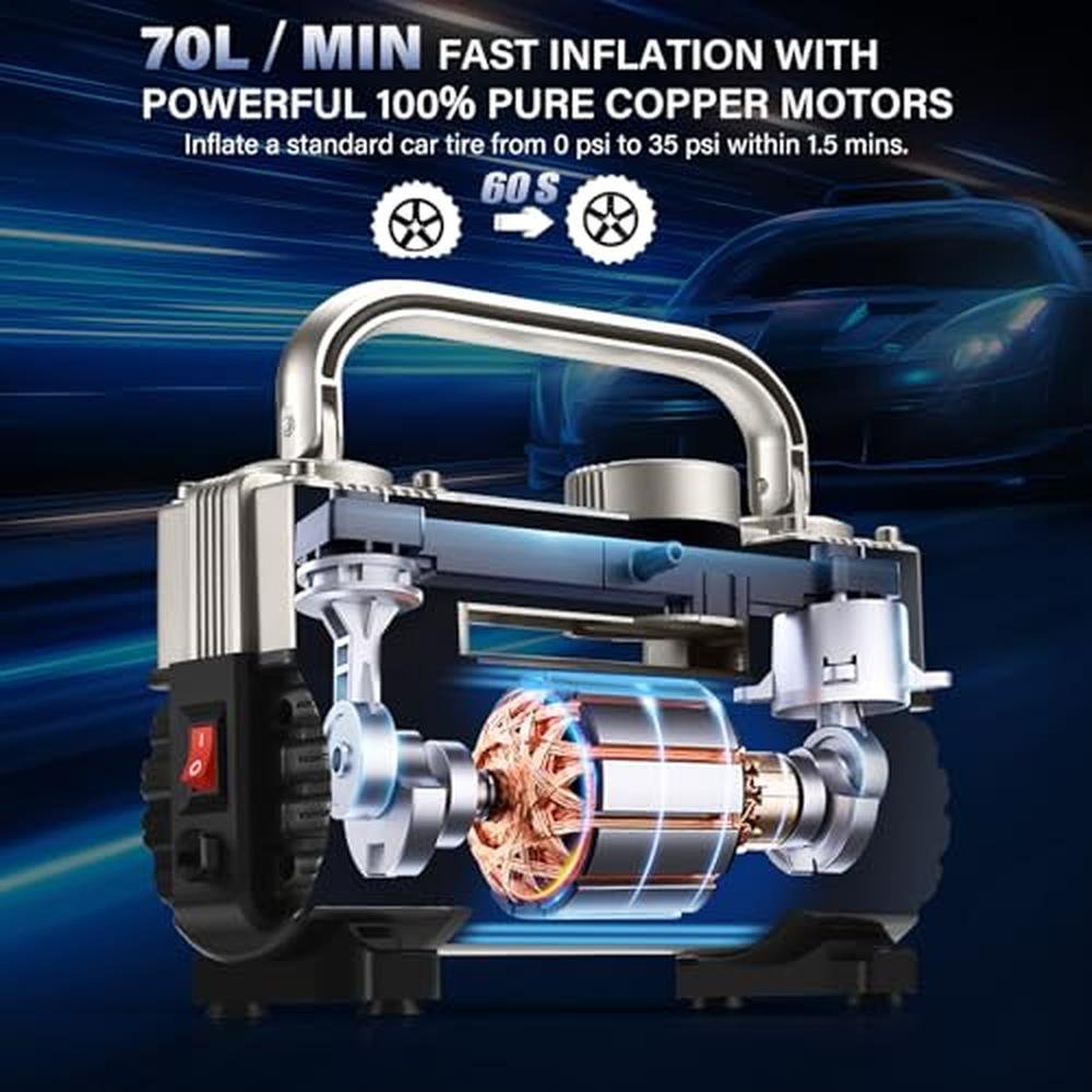 Car Air Compressor | GSPSCN 6X Faster Inflation Tire Inflator Heavy Duty Double Cylinders | 150PSI Portable Air Pump for Car Truck SUV Tires