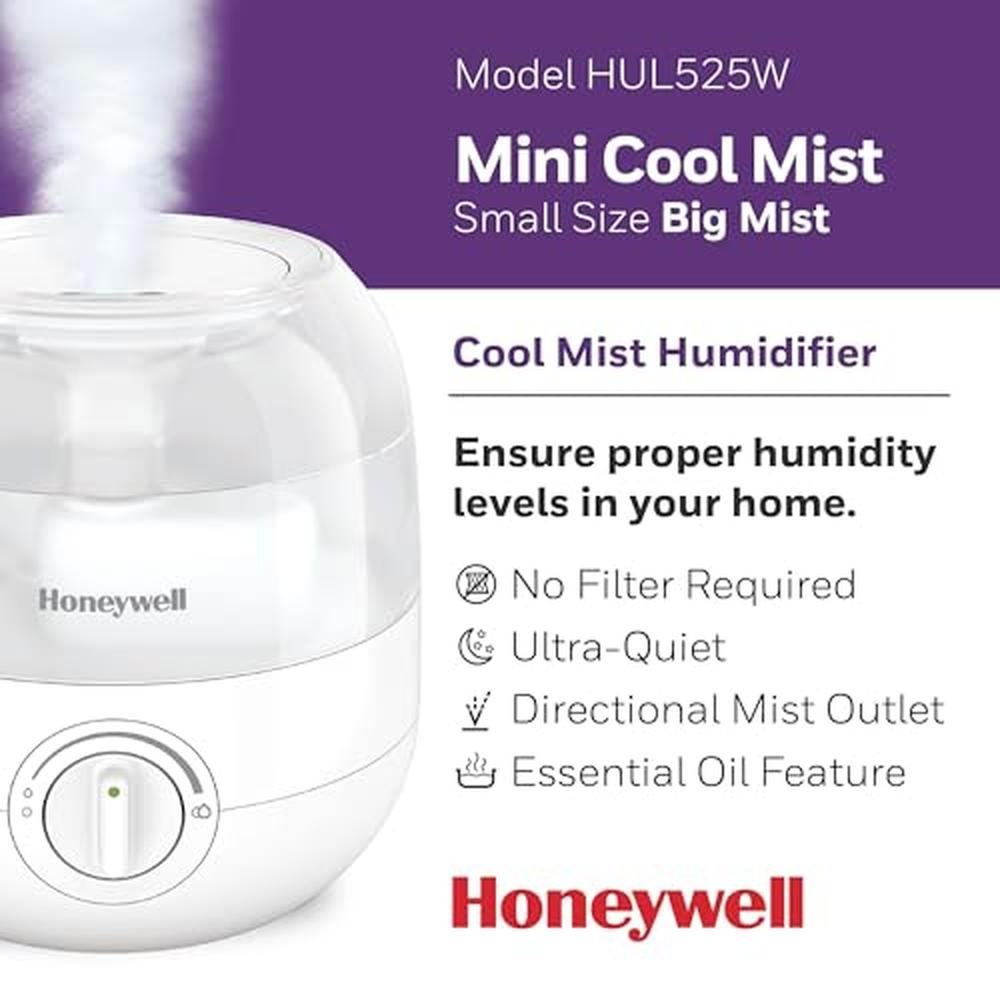 Humidifier Honeywell | Honeywell HUL525W Cool Mist Humidifier | Ultra Quiet Operation and Auto Shut Off for Small Bedroom or Office