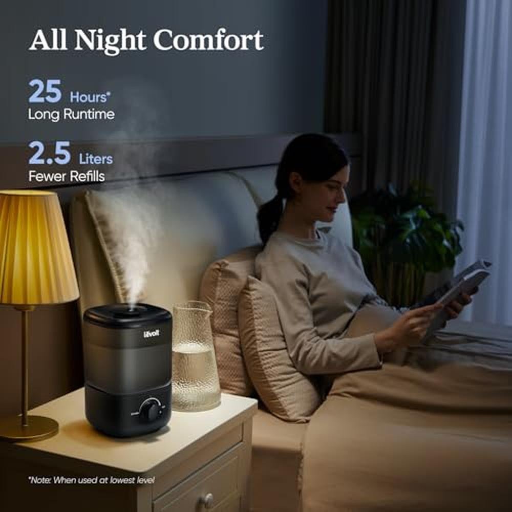 - High-capacity water tank for prolonged usage and optimal moisture levels