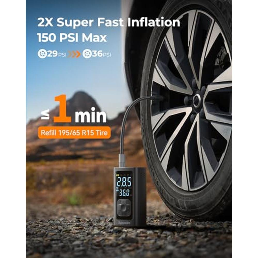 Air Car | Syncwire Tire Inflator Portable Air Compressor 150PSI | 2x Faster Inflation Smart Air Pump for Car Tires