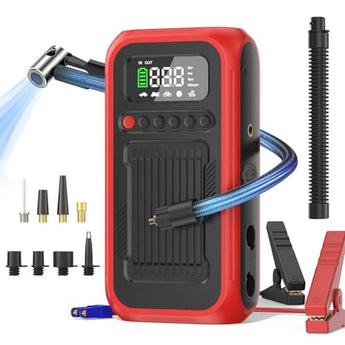 Experience the ultimate in convenience and portability with our premium air pump for car tires, featuring a powerful 150PSI air compressor and 28000mAh battery. This versatile air pump for tires is designed to make inflating your car, motorcycle, or bike tires a breeze, and also comes with an air blower for added convenience. With its digital pressure gauge and LED light, you can easily monitor and control the air pressure, even in low-light conditions. Whether you're looking for an air pump for car or a reliable air pump for bike, our electric air pump is the perfect solution. Elevate your travel experience with our top-tier air pump, engineered to provide superior performance and durability. Immerse yourself in the world of high-end electronics with our exclusive range of products, carefully curated to meet the discerning needs of premium customers.