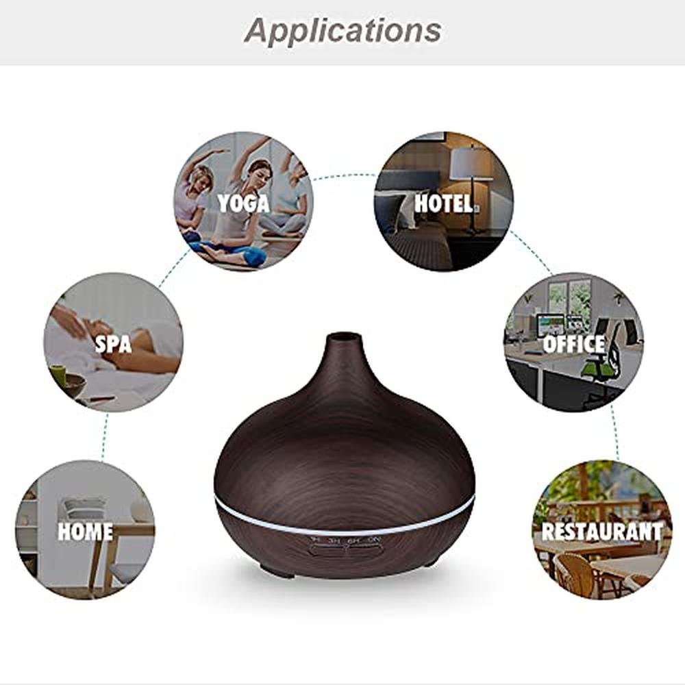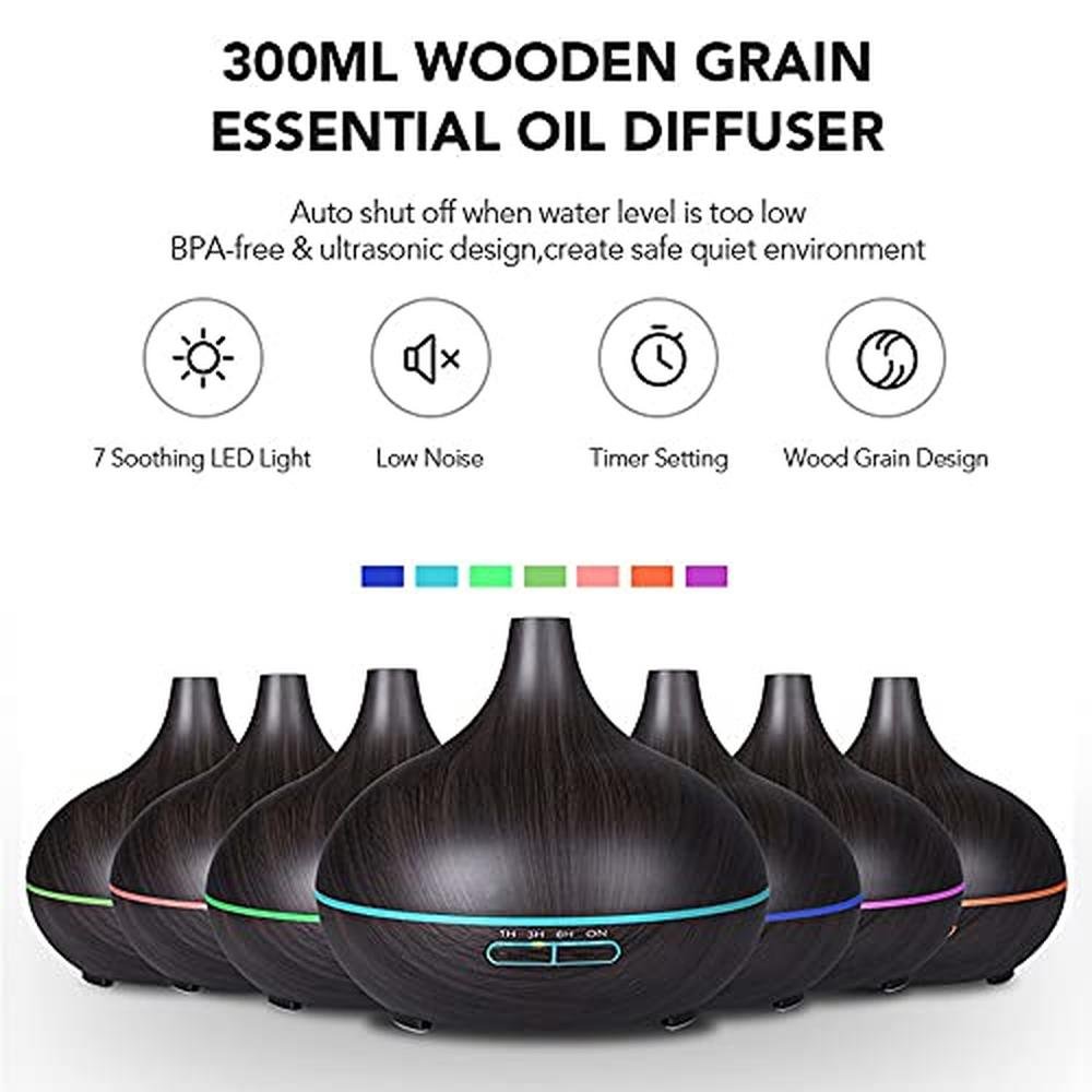 Wood Grain Aroma Diffuser 300ml Dark Brown, U-MATE, Essential Oils, Ultrasonic Cool Mist Humidifier, 7 Colors Light and 4 Timing Set Up, Auto Shut-Off Function, for Office Home Study Yoga Spa