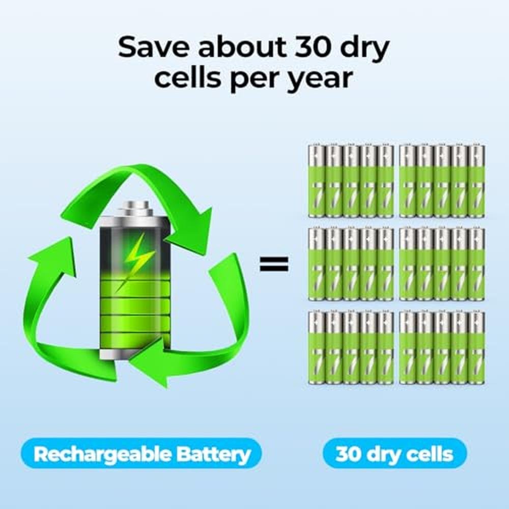 - Rechargeable via USB, reducing waste and saving you money on battery replacements