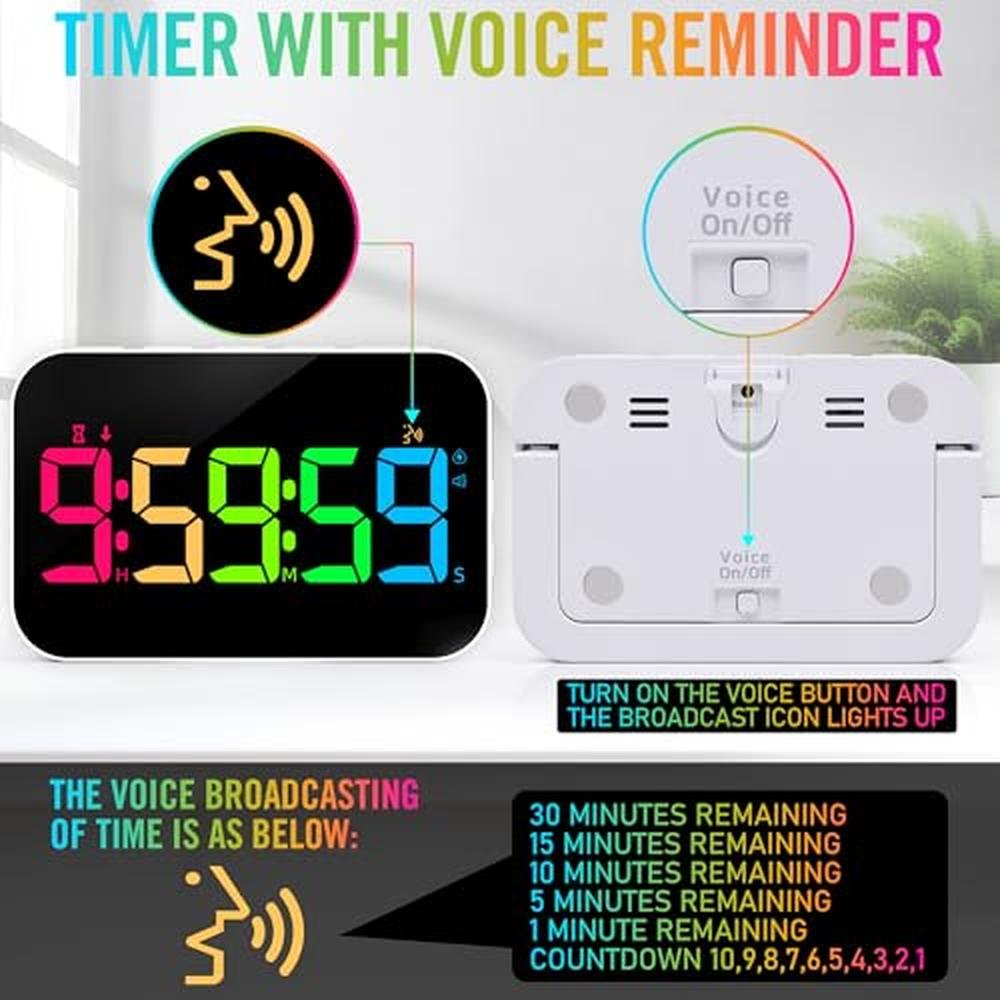 - Advanced rechargeable digital timer with a large LED display for clear visibility of countdown time