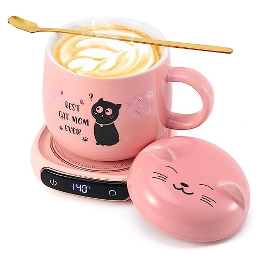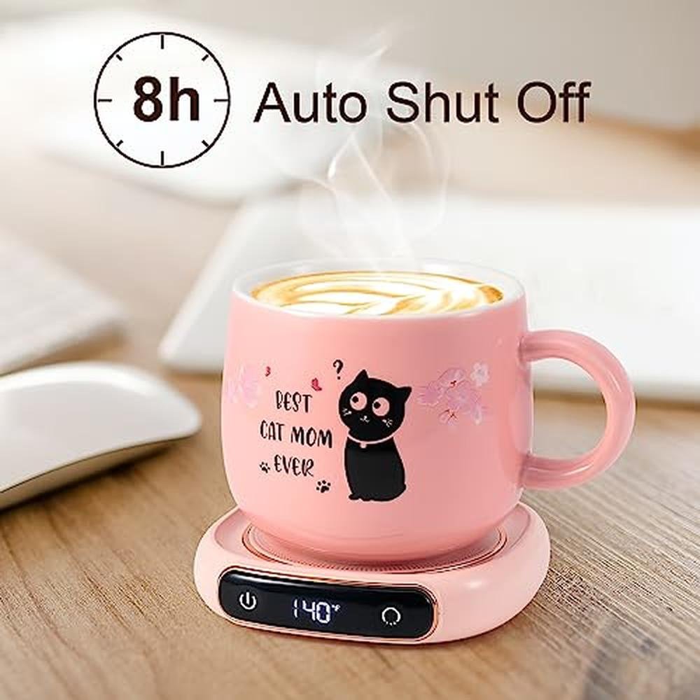 Bsigo Coffee Mug Warmer & Best CAT MOM Ever Mug Set, Electric Candle Mug Warmer 8H Auto Shut Off, Home & Office Beverage Cup Coffee Warmer for Desk, Cat Lover Mom Sister Birthday Women Mothers Day