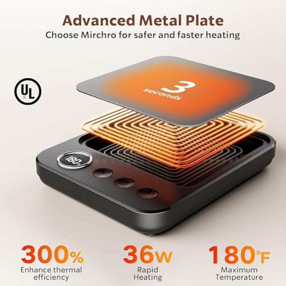 - UL Certified Power Cord | 36W Fast Heating | 1-12 Hour Timer | Waterproof Metal Heating Plate | No Mug