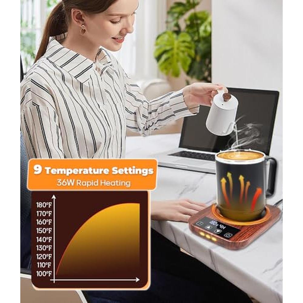 • Brand-New 9 Temperature SettingSALMOPH self heating coffee mug warmer will keep your coffee at a perfect drinking temperature, providing a perfectly warm sip every time. You can control the temperature to keeping your coffee or milk up from 100 to 180. Whether you're keeping your coffee hot or warming up a cold drink, this mug warmer for desk maintains your desired temperature throughout.