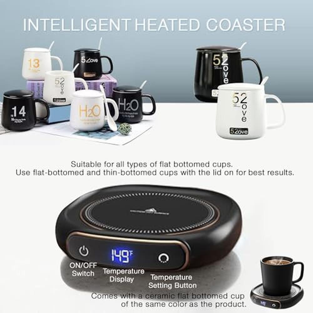 - Thoughtful Design: Our coffee mug with electric heater is very useful. The heater heats up quickly, keeps the heat well, is well made and easy to use. For everyone who loves hot drinks, this is an excellent choice. The design of this coffee mug warmer is simple and elegant. It doesn't take up much space on the desk and adds a touch of style. The heating effect is great, and the temperature settings allow you to heat coffee or other beverages to your preferred temperature.