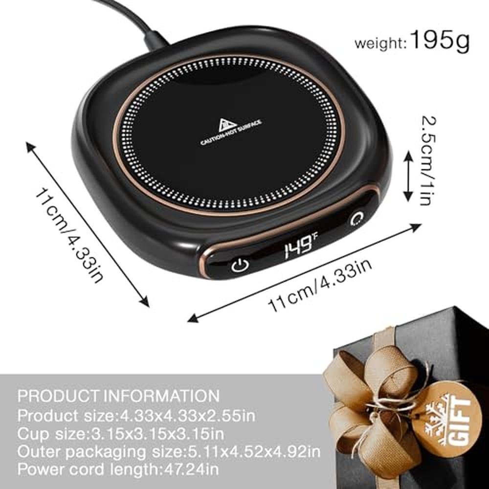 - Adjustable Three-Temperature Setting: Our mug warmer will keep your coffee, tea, beverage, milk, chocolate, cocoa at a perfect drinking temperature. You can control the temperature by tapping the button, keeping your coffee or milk up to 104-131-149 (40-55-65). The adjustable temperature feature allows you to customize the warmth to your liking, perfect for those chilly mornings or late-night work sessions.Note: Pls noted the smart mug warmer just keep your coffee /Tea/beverage hot,can not heat up coffee /tea.It is not a kettle.