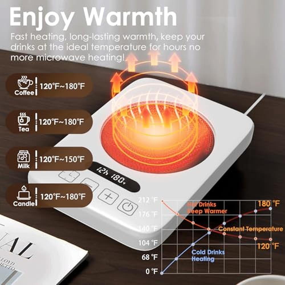- User Friendly Digital Control: The intuitive 4-point touch functionality and clear display make operating the mug warmer effortless. Whether you're at home or in the office, its simple interface ensures easy use for anyone, day or night