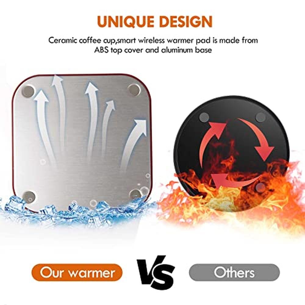 • Unique Design:Ceramic coffee cup, the innovative wireless warmer pad is made from an ABS top cover and aluminum base, Ceramic cups can be hand washed and placed in the dishwasher, and the heating pad can be cleaned with towels.