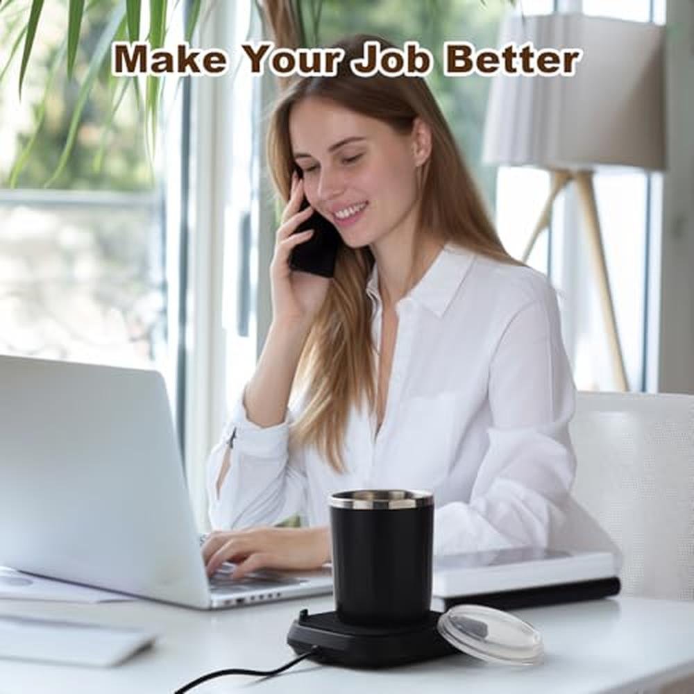 • Smart cup warmer for desk: Our coffee warmer for desk auto shut off after 8 hours of continuous use, so you don't have to worry about forgetting to turn it off to prevent the risk of overheating or fire. This heated coffee mug is made of high-quality abs + aluminum alloy material and upgraded metal heating plate. This coffee cup warmer for desk not only heats faster, but is also waterproof and comes with an anti-scalding silicone pad to prevent you from getting hurt. Note: No noise when working.