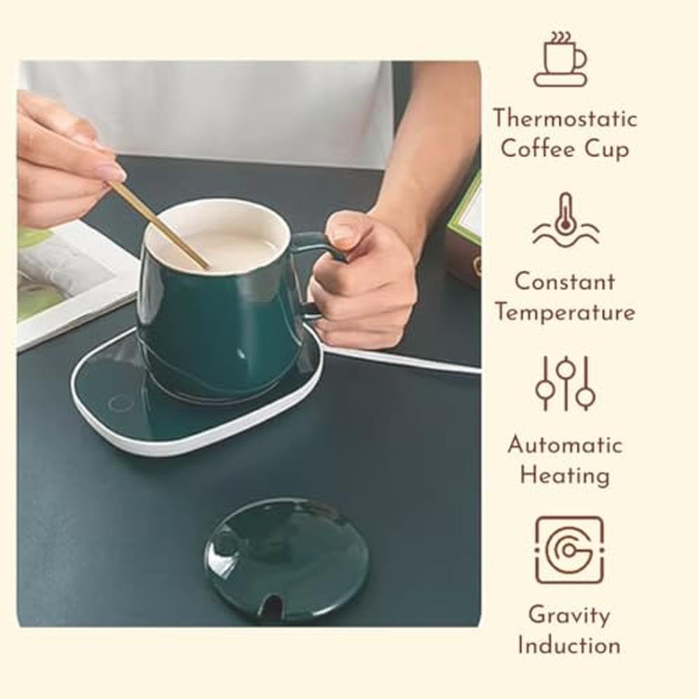 Coffee Mug Warmer with Coffee Mug Set, Auto On/Off Coffee Cup Ceramic Warmer for Home, Desk, Office. Best Gift. USB Cord Included (Black)