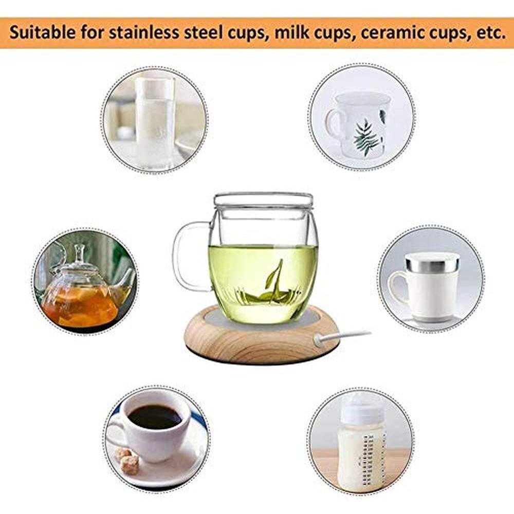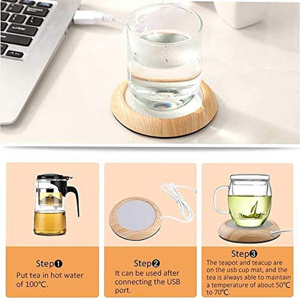 GOTOTOP USB Heated Coaster Wood Grain Cup Warmer Heat Beverage Mug Mat Coffee Heater Pad Grain Mug Warmer 5W