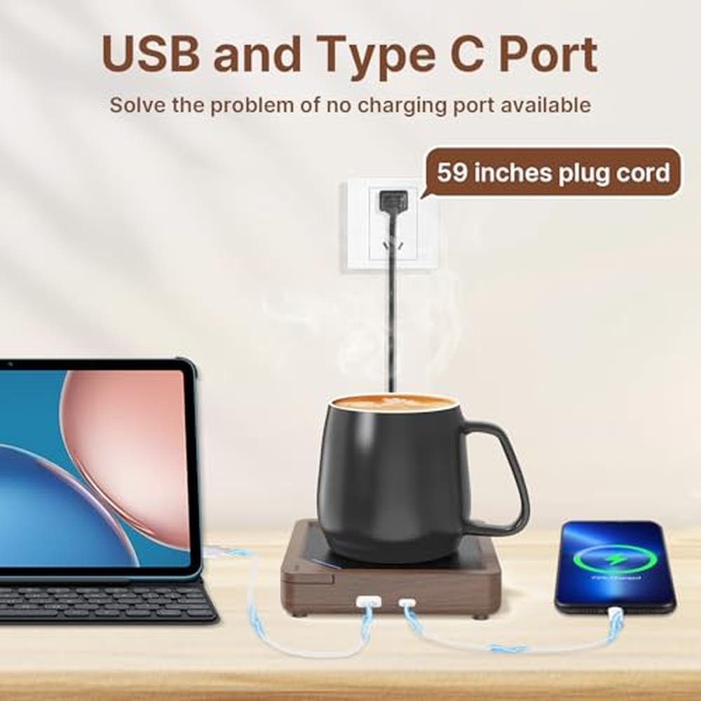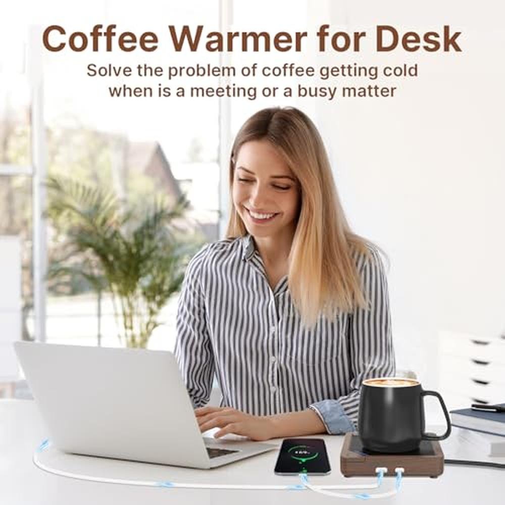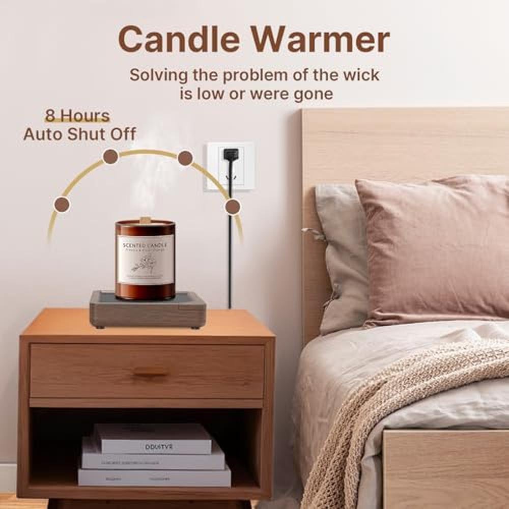 HIBSR Smart Coffee Mug Warmer Imitation Wood Grain Candle Warmer Plate Safely Releases Scents Without a Flame Used as Candle Jar Warmer, Mug Warmer Cup Warmer Tea Warmer Desk Home Office