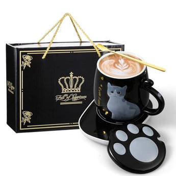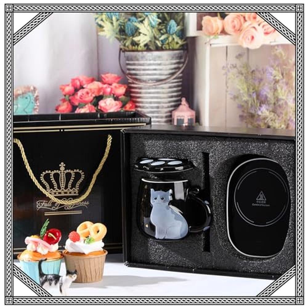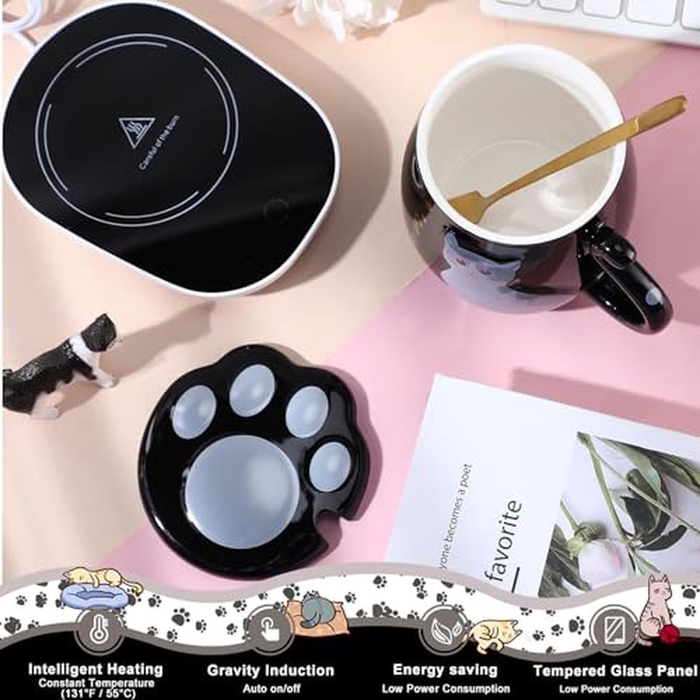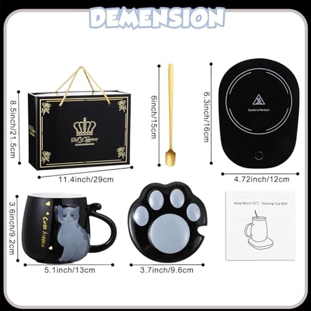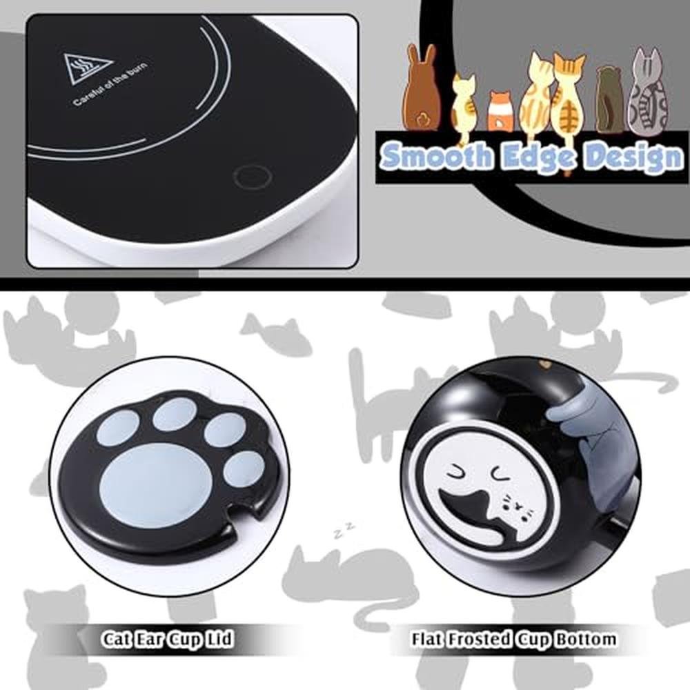 Honeydak Coffee Mug Warmer Cute Cat Mug Set Cup Warmer for Desk for Women Heated Coffee Warmer for Mom Home Office Christmas Birthday Gifts(Black)