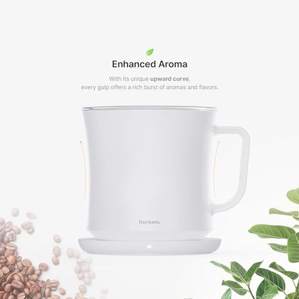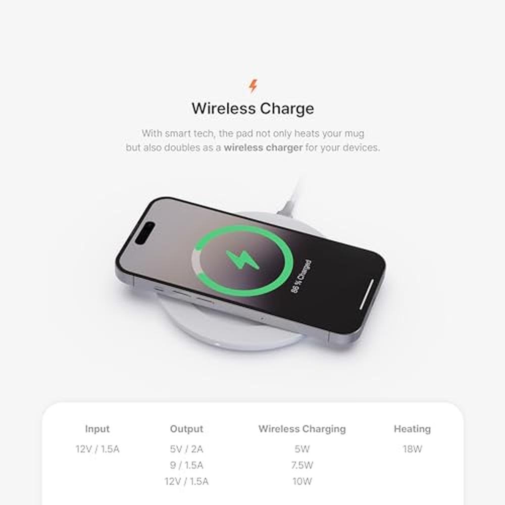 hurkins Smug, up to 149 Coffee Mug Warmer & Mug & pctg Lid Set, self Heated Cup with Wireless Charging Function, Office/Home for Desk. (Grande Black)