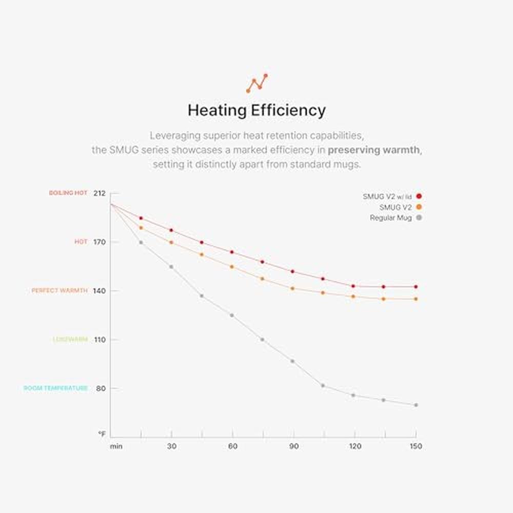 - KEEPS YOUR BEVERAGES HOT AT MAX 150F/55. HURKINS SMUG V2 Induction mug warms your water, coffee or tea between 131F (without lid) - 150F(with lid).
