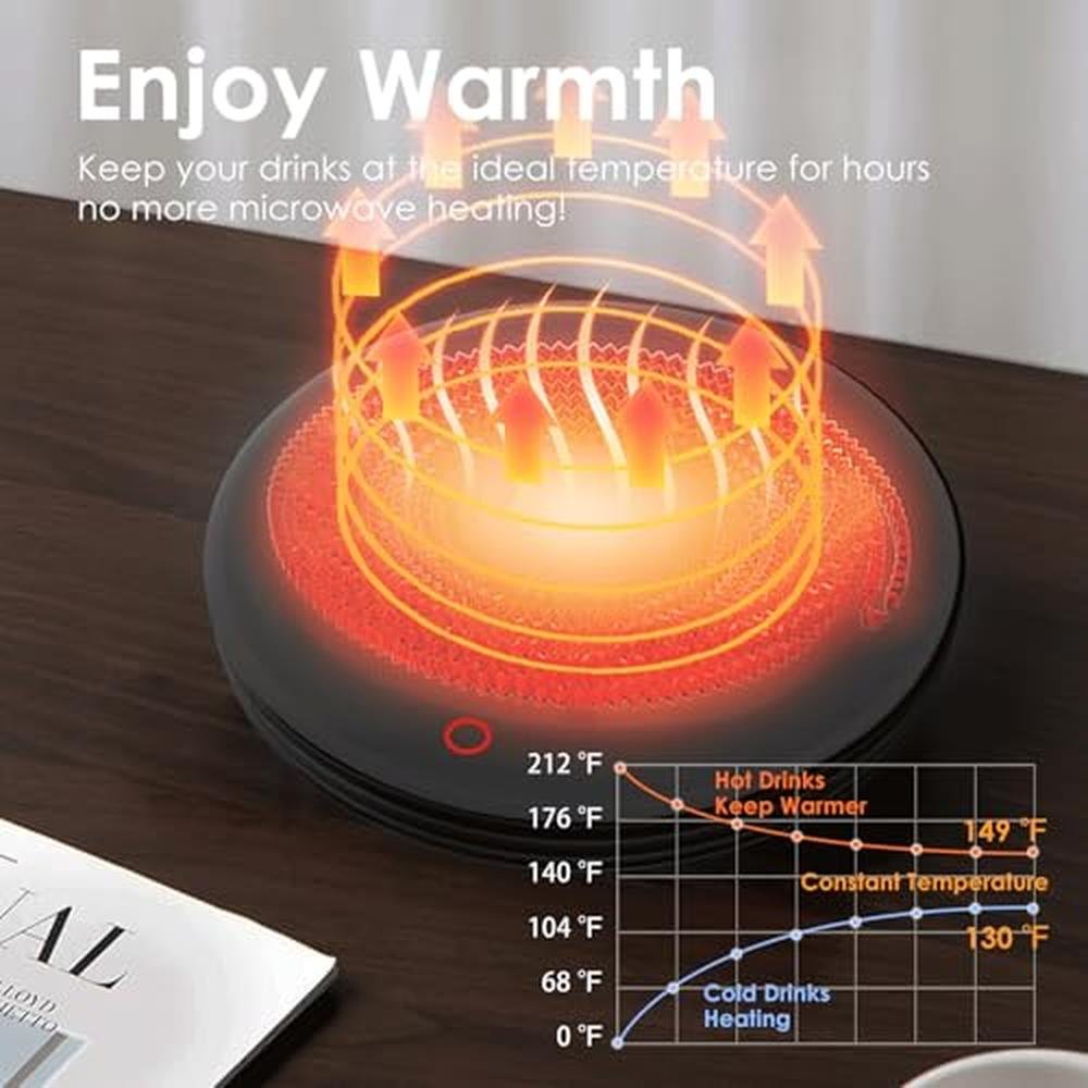 - KEEP DRINKS WARM: This cup warmer maintains your beverages at a cozy temperature range of 104F to 140F, ensuring your drinks stay warm and delightful. Especially during chilly weather, a warm drink brings comfort and relaxation. Enjoy the happiness of sipping warm coffee, tea, milk, or hot cocoa anytimeeven when you're busy at work