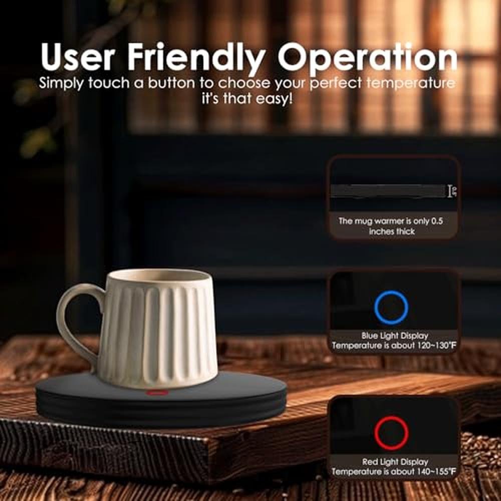 - SPACE SAVINGAt just 0.5 inches thick, this compact coffee mug warmer takes up minimal space, making it ideal for small countertops or desks. Its sleek design lets you enjoy hot drinks effortlessly without adding clutter