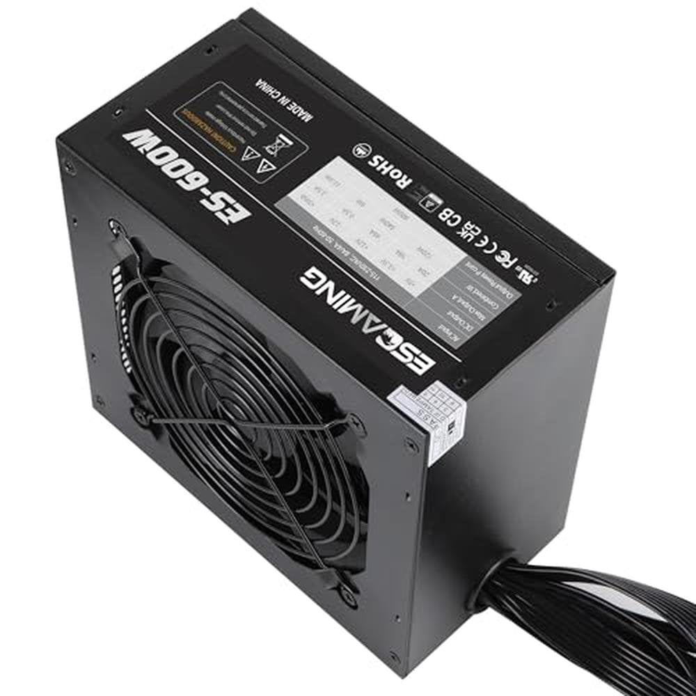 600W ATX Power Supply PSU, ESGAMING with 120mm Ultra Quiet Cooling Fan All Protections