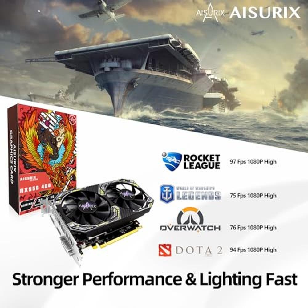 AISURIX RX 550 4GB Graphics Card LP GDDR5 128Bit Computer Video Card with HDMI/DVI Ports DirectX 12 PCI Express 3.0 X8 GPU Graphics Card for Gaming PC