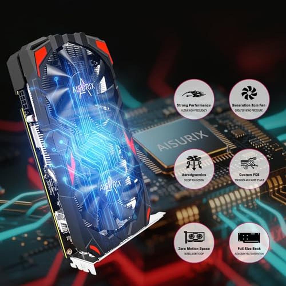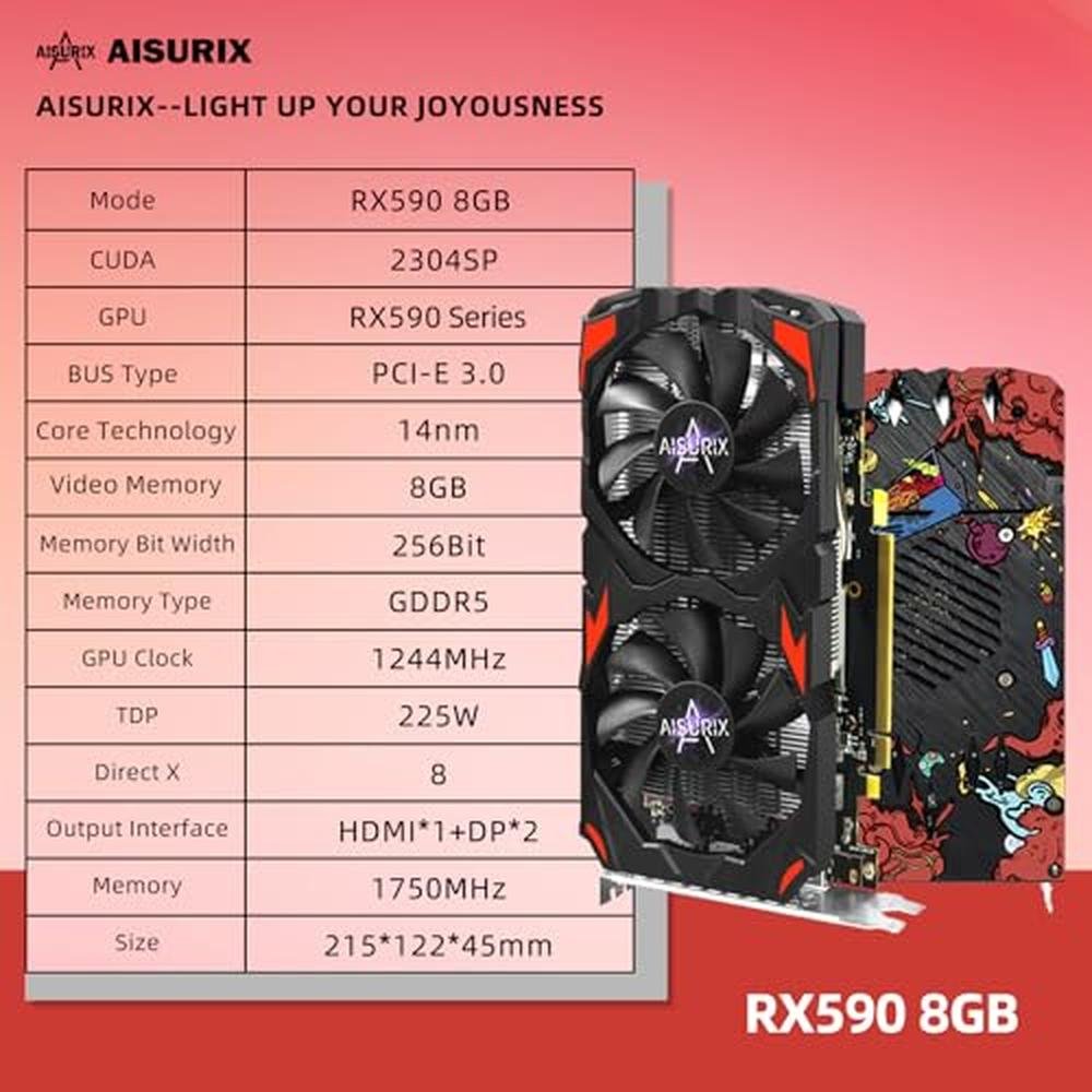 AISURIX RX 590 Graphics Card, Real 8GB, GDDR5, 256 Bit, RX 580 2304SP Pc Gaming Video Card, 2XDP, HDMI, PCI Express 3.0 with Freeze Fans Graphics Card for Gaming pc
