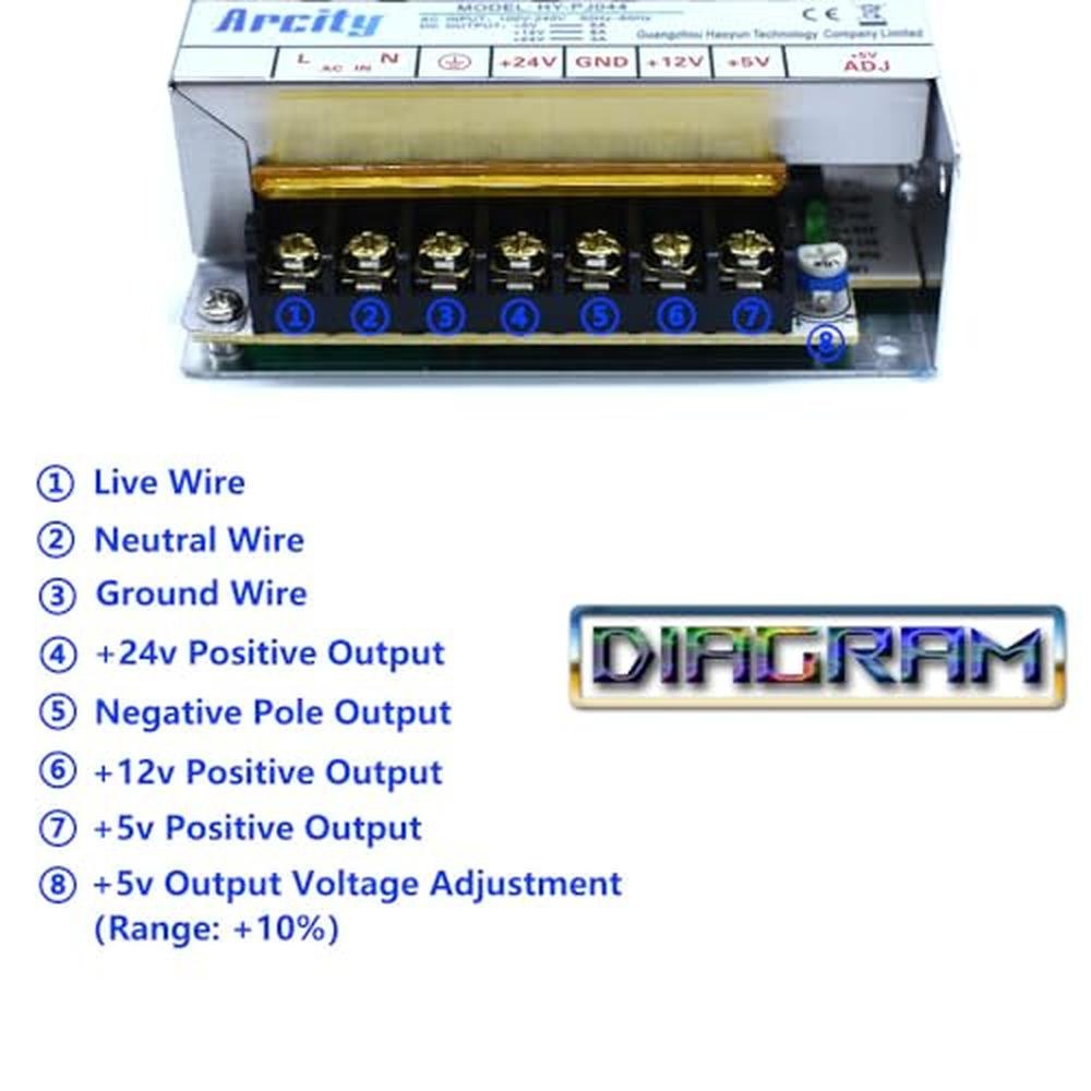 Arcity 5V 12V 24V Output Switching Power Supply Unit Adjustable for Video Multi Games Machine Console Cocktail CCTV Computer DIY Horizontal New(+5V/8A +12V/8A +24V/3A)
